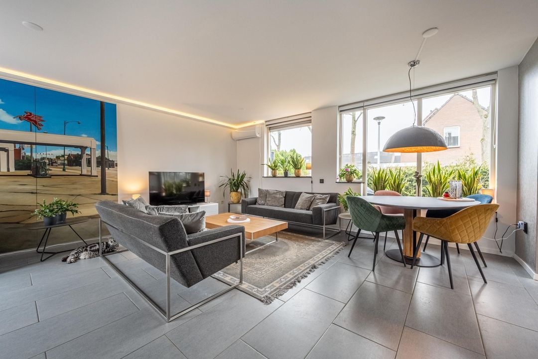 Vanuit de hal is er toegang tot de woonkamer. De woonkamer heeft een prettige lichtinval en staat in open verbinding met de keuken en is voorzien van vloerverwarming en airconditioning.