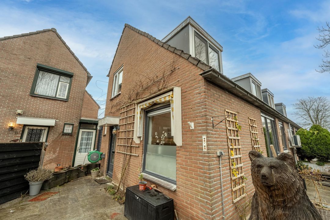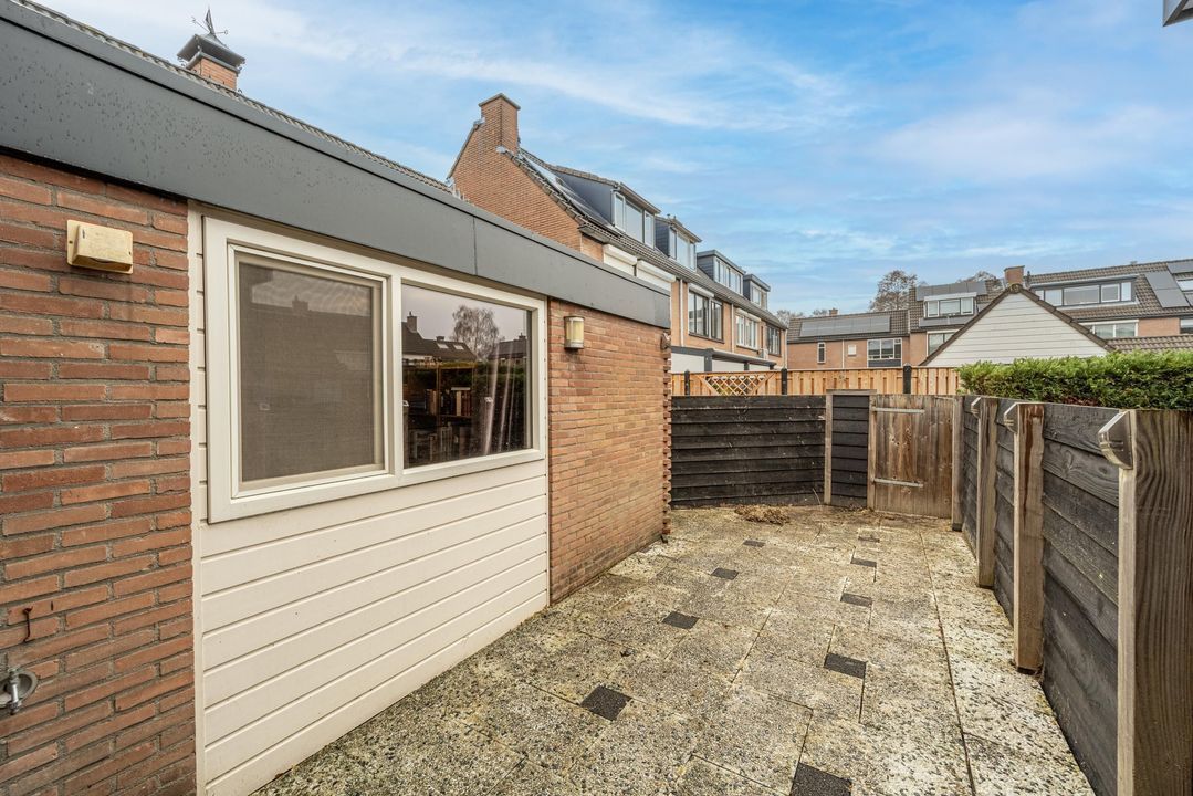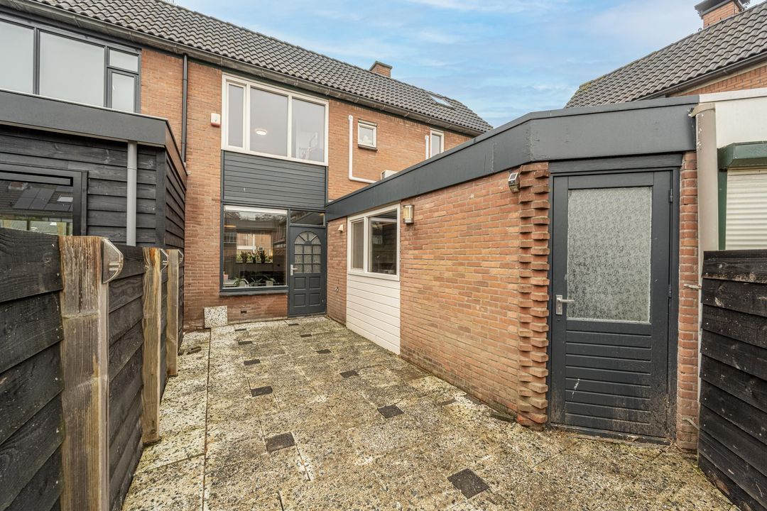 De achtertuin is grotendeels betegeld en beschikt over een achterom. Aansluitend aan de woning bevindt zich een berging, geschikt voor opslag. De achtertuin biedt ruimte voor een zitplek.