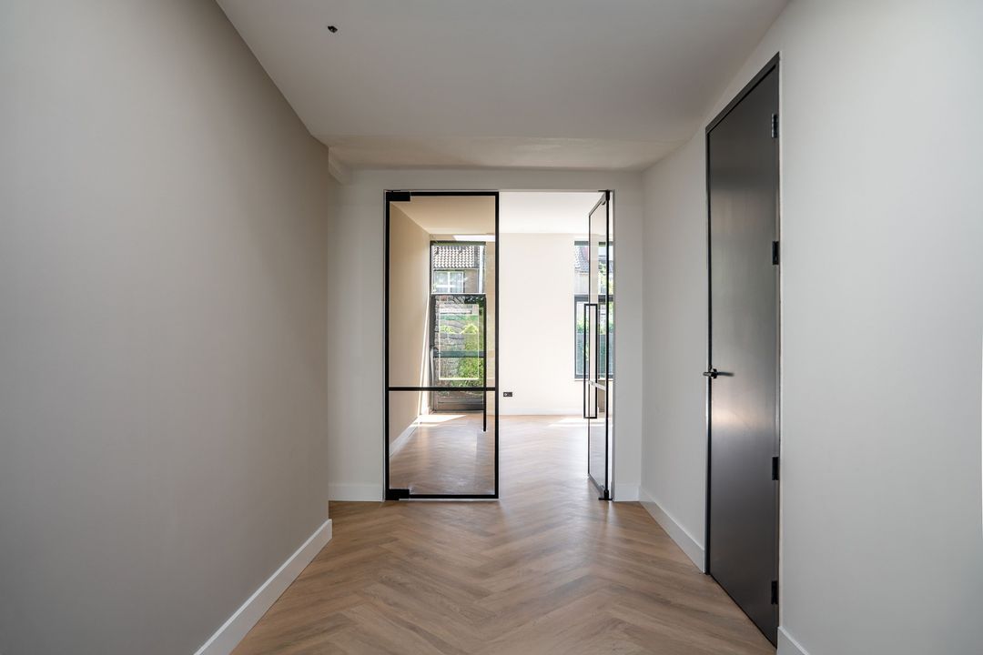 Binnen zijn de plafonds en wanden strak afgewerkt met nieuw stucwerk. De vloer is volledig vernieuwd met een stijlvolle visgraatvloer van hoogwaardige kwaliteit, gelegd op een ondergrond van uitstekend geïsoleerd schuimbeton. Door de hele woning is comfortabele 22-groeps vloerverwarming aangelegd.
