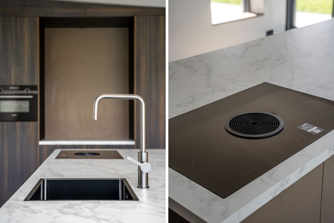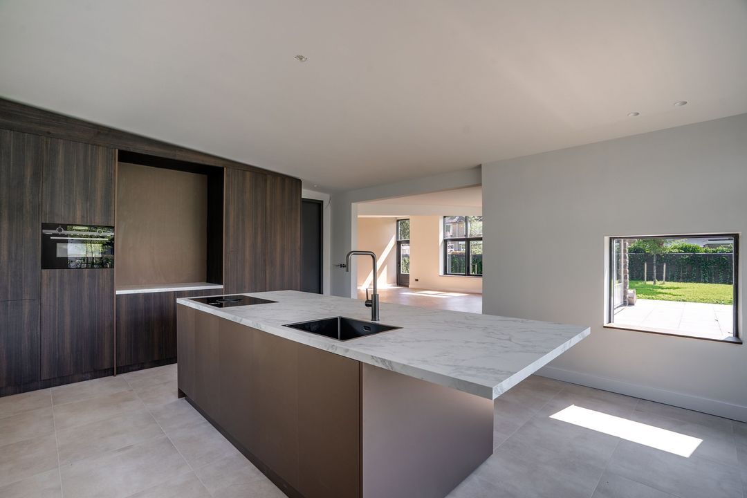 De keuken is volledig nieuw en van alle gemakken voorzien: een vaatwasser, combi-oven, elektrische kookplaat met geïntegreerd luxe afzuigsysteem, een royale koel-vriescombinatie, spoelbak met kraan, en een fraai werkblad met modern afgewerkte kasten.