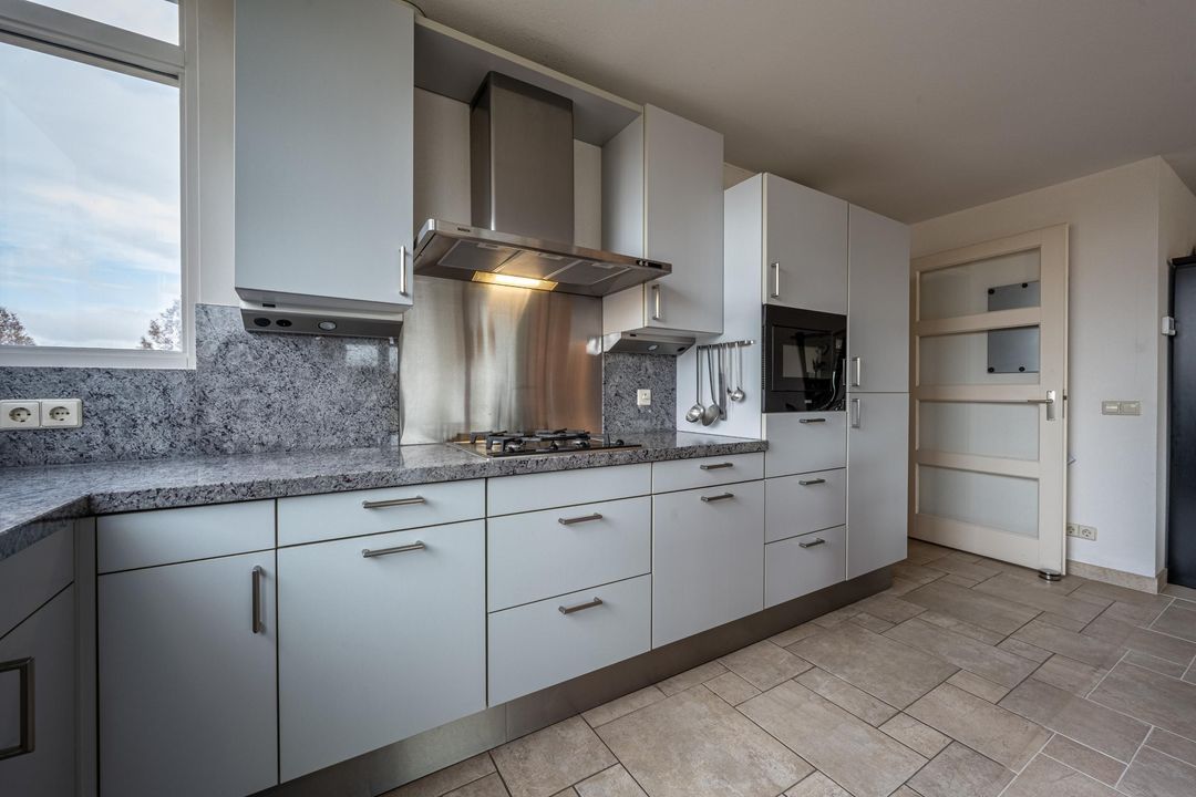 De open L-vormige keuken sluit aan op de woonkamer en vormt samen één geheel. Door de open indeling trek je gezellig met elkaar op – of je nu aan het koken bent, met vrienden aan tafel zit of gewoon geniet van een kop koffie aan het aanrecht. De keuken is uitgevoerd in een lichte blauwgrijze tint met een natuurstenen werkblad en is voorzien van moderne apparatuur: een AEG vaatwasser (2024), magnetron (2024), een 4-pits gasfornuis, een ruime koel-vriescombinatie en mechanische ventilatie. Een fijne, praktische ruimte die moeiteloos opgaat in het woongedeelte – hier voelt koken echt als onderdeel van het wonen.
