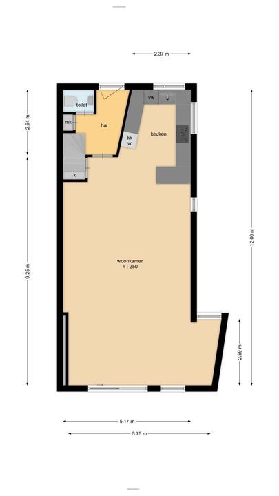 Bij binnenkomst valt meteen de ruimte en het licht op. Vanuit de hal heb je toegang tot het toilet met fonteintje, de meterkast, trapopgang naar de eerste verdieping én de ruime woonkamer.
