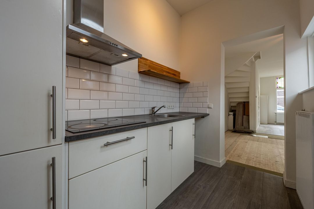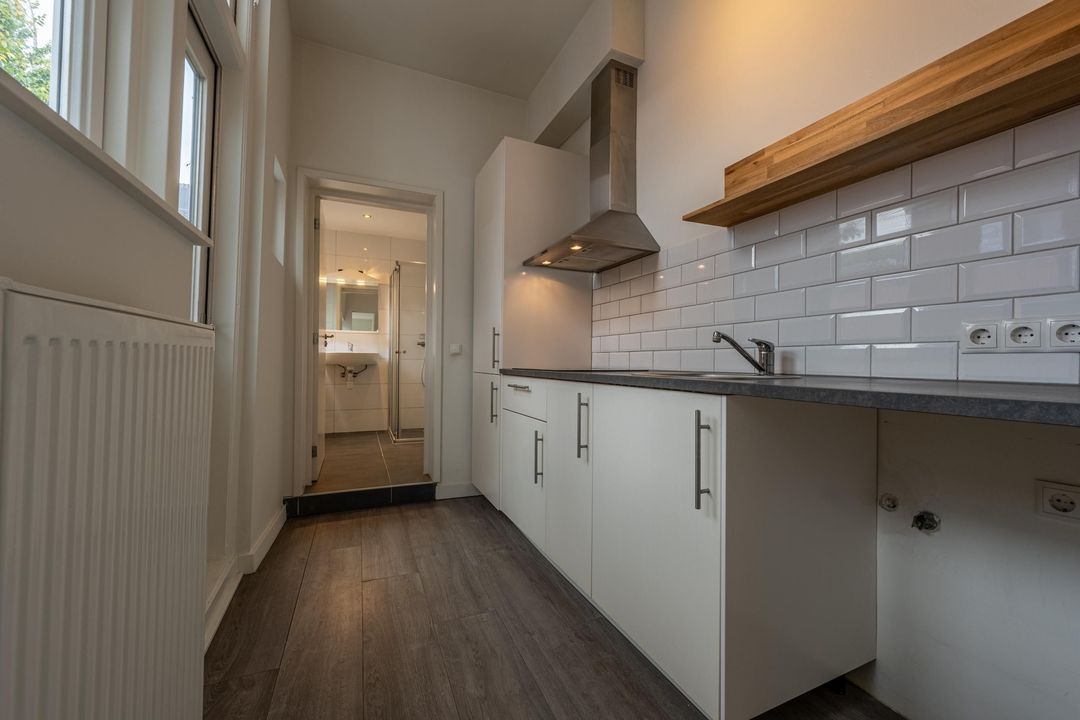 De keuken (2018) is praktisch en fris afgewerkt, voorzien van witte fronten, een kookplaat, afzuigkap en voldoende kastruimte. Dankzij de recht-toe-recht-aan opstelling is het een fijne plek om te koken, terwijl je door het raam ook prettig licht binnenkrijgt.