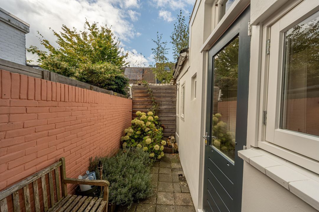 Via de achterdeur kom je in de knusse stadstuin: een plek waar je na je werkdag heerlijk kunt relaxen met een drankje of een barbecue. Dankzij de beschutte ligging geniet je hier veel privacy, maar wel met een ideale zonligging op het westen.