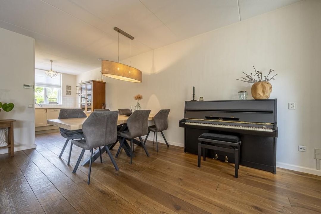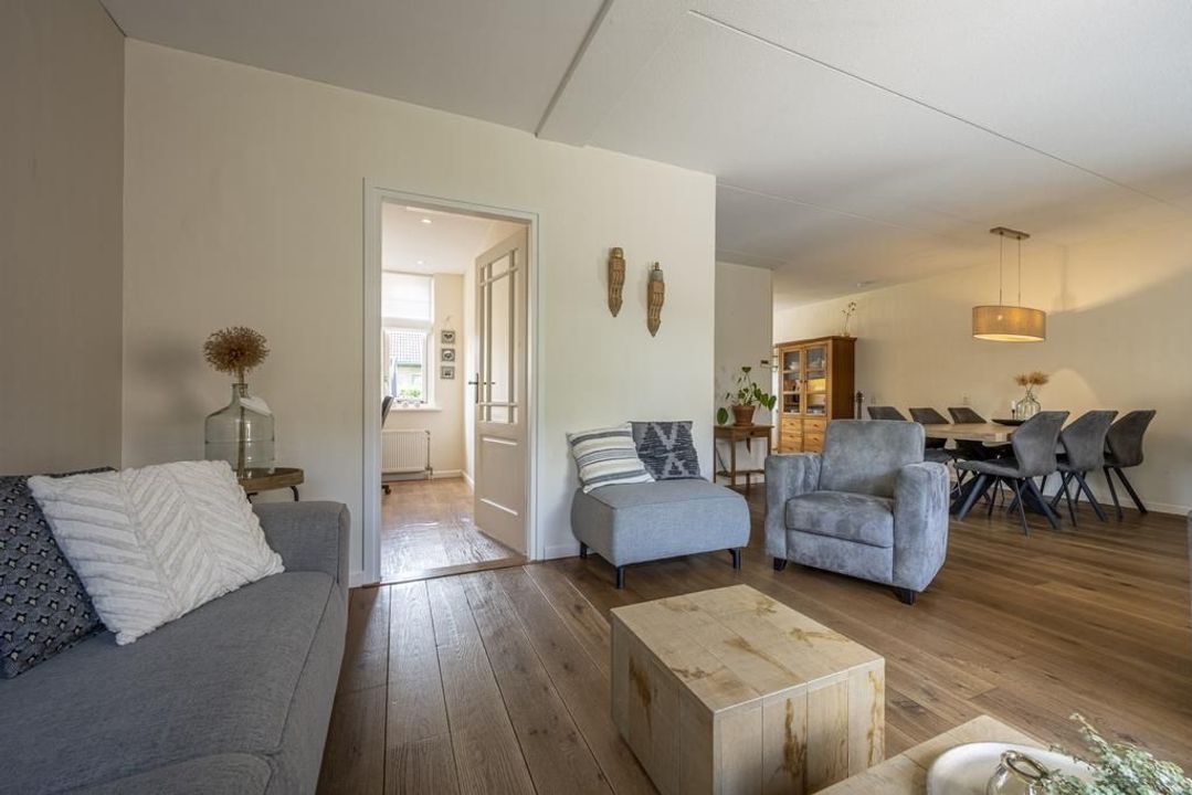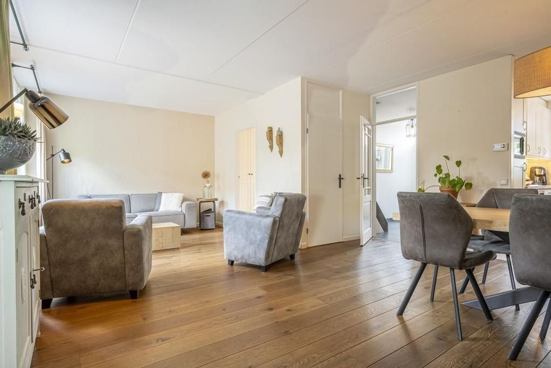 De woonkamer is voorzien van een massief eikenhouten vloer.