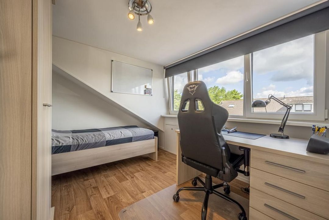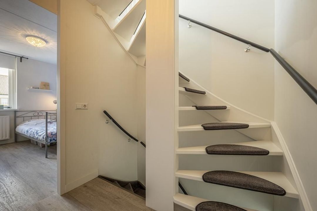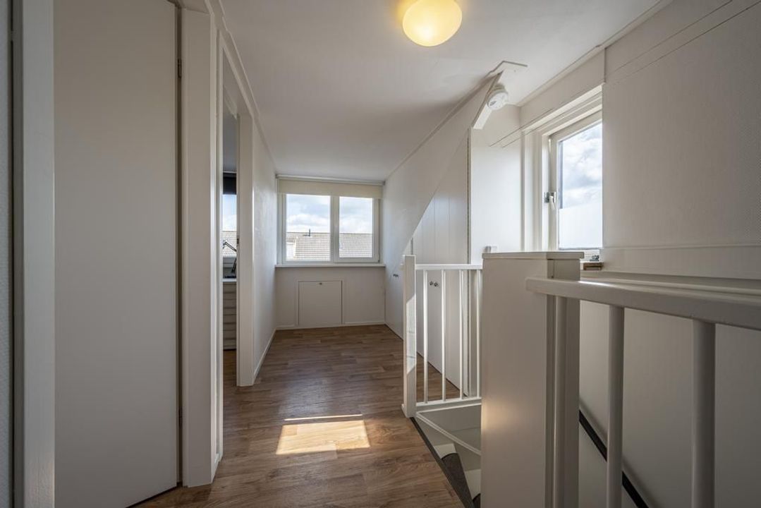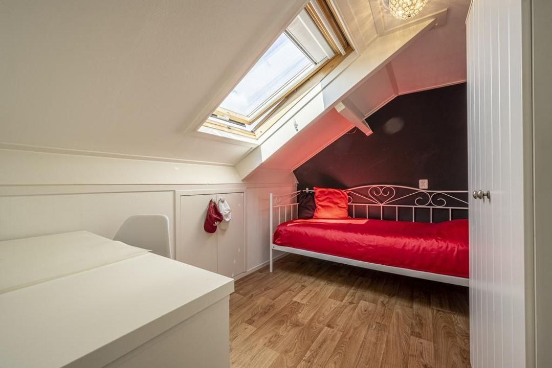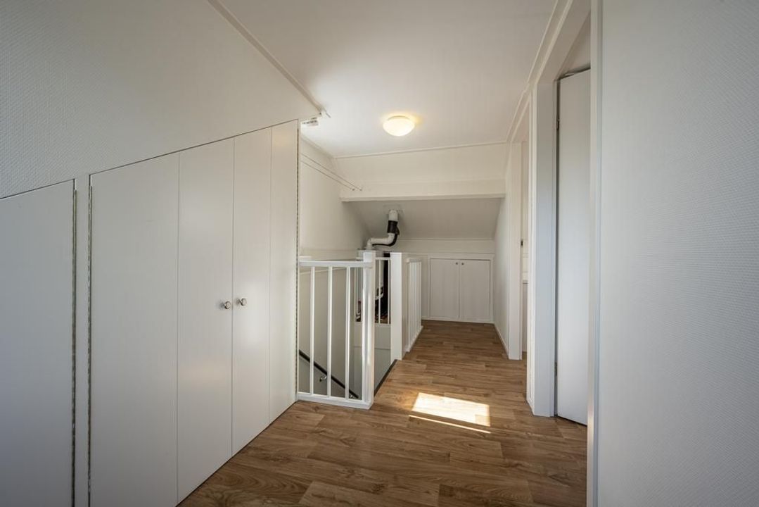 In de royale en lichte overloop bevinden zich opbergruimten, de cv-ketel en de toegangen tot de 2 slaapkamers. Beide slaapkamers hebben een goede afmeting en zijn afgewerkt met een vinylvoer. Aan de achterzijde is een ruimte scheppende dakkapel geplaatst.