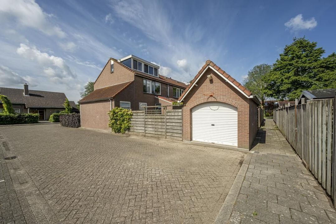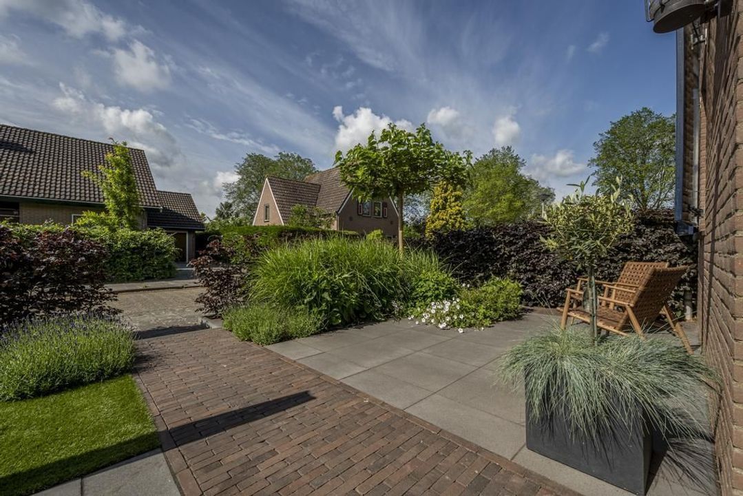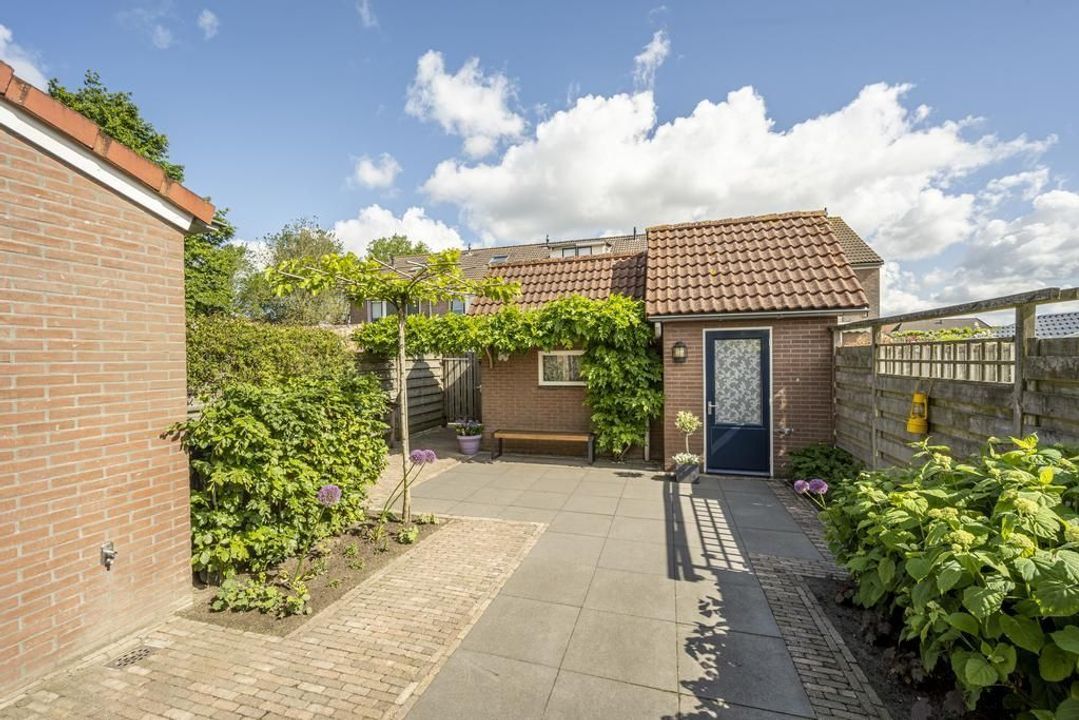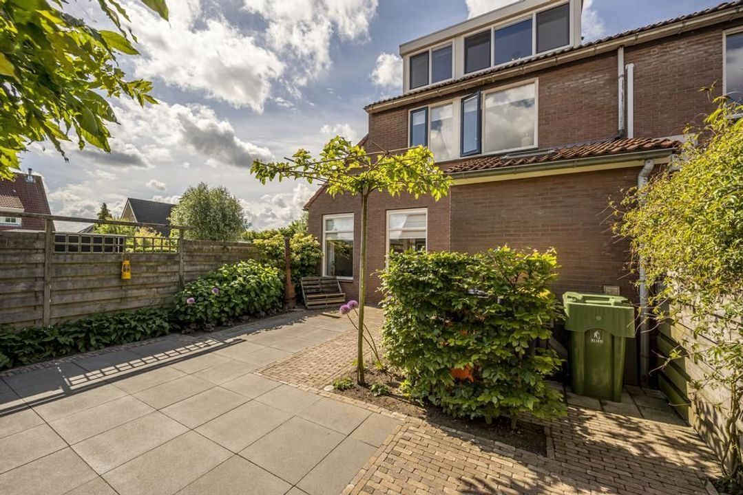 De achtertuin heeft door de hoekligging van het perceel een fijne afmeting. De ruime tuin is te bereiken via de bijkeuken en via de tuinpoort aan de achterzijde van de woning. De tuin is ingericht met tegels, volwassen beplanting en een waterpunt.