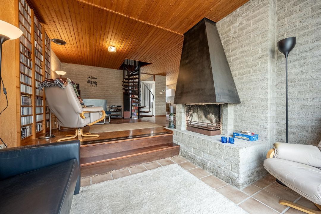 Binnenkomst in de entree met een toilet en directe toegang tot de garage en woonkamer. De sfeervolle woonkamer is speels ingedeeld met een open keuken aan de voorzijde en een eethoek aangrenzend. Er is volop ruimte voor een grote zithoek, en de unieke zitkuil rondom de open haard maakt het een gezellige plek om samen te komen. Via de schuifpui bereik je de achtertuin, waardoor er een prachtige verbinding ontstaat tussen binnen en buiten.