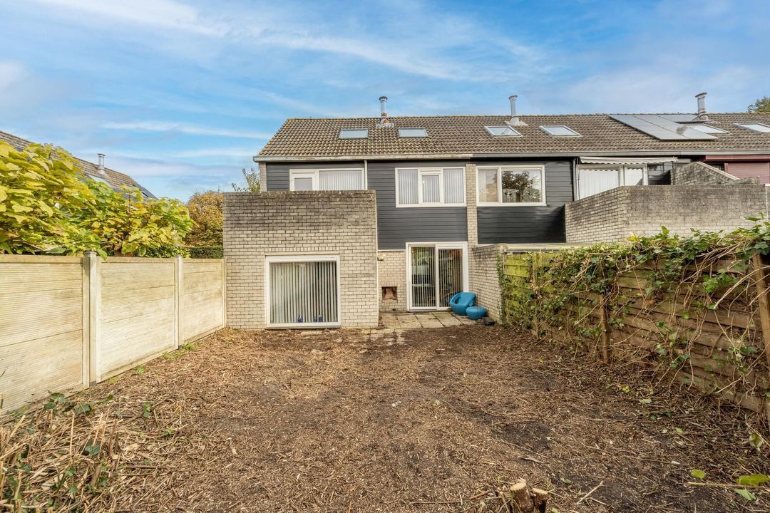 De achtertuin is een leeg canvas dat geheel naar eigen wens kan worden ingericht. Dankzij de ligging op het westen geniet je hier de hele middag tot zonsondergang van de zon.