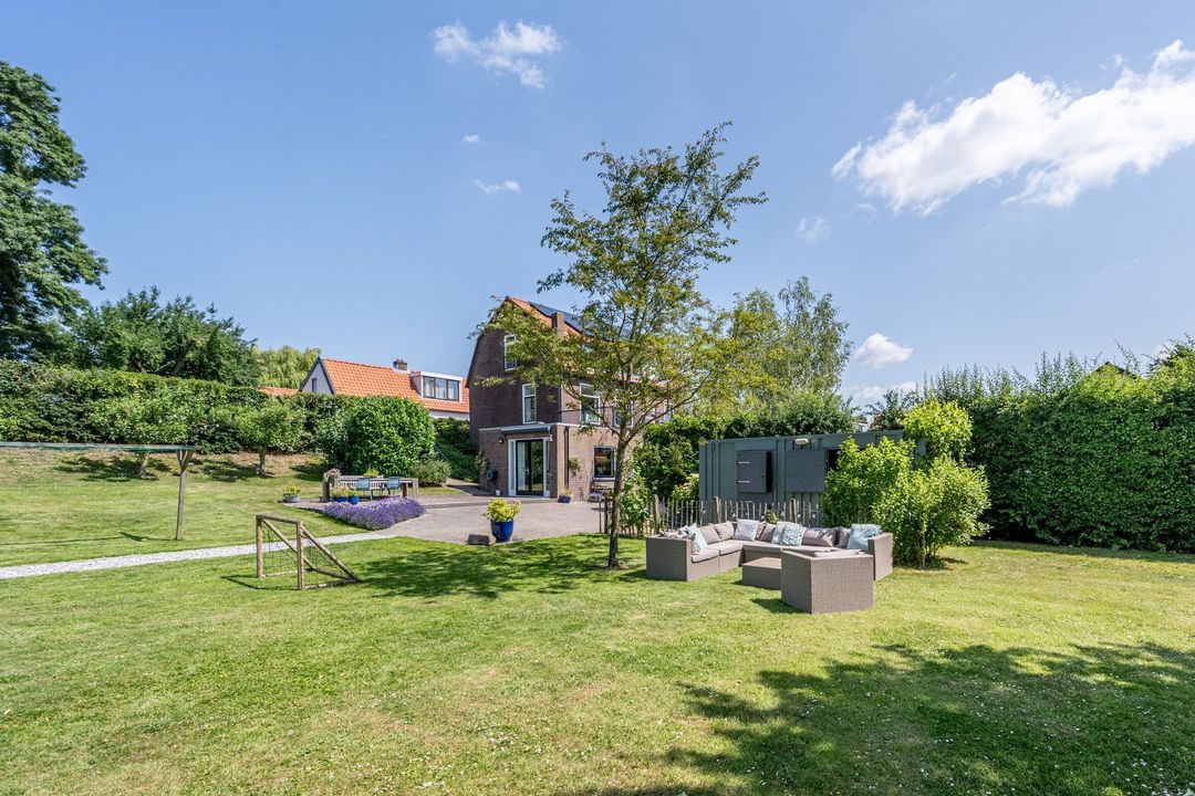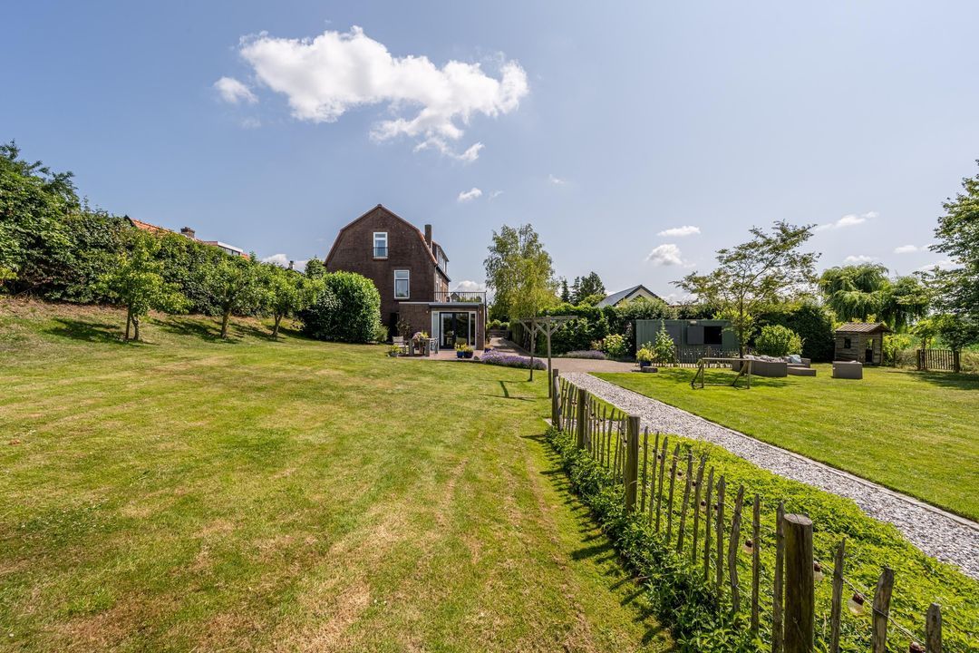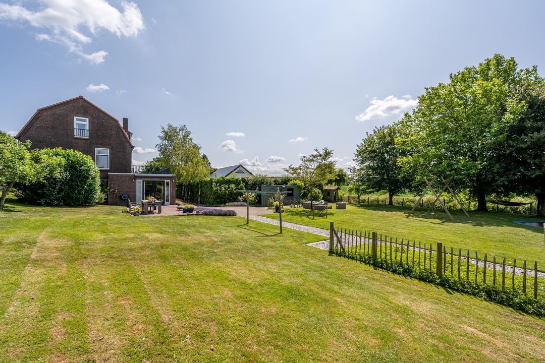 Het perceel is uitzonderlijk breed en grotendeels vlak, waardoor de mogelijkheden voor dieren en paarden en/of een moestuin uitstekend zijn. Het geheel is omheind en aan de dijkzijde afgezet met een strak houten hekwerk. Er is een container in gebruik als dierenstal en opslag voor tuinmeubelen, een eenvoudige rijbak en volop ruimte voor weides, paddocks of speelveld. De ligging aan het water en het vrije uitzicht maken het geheel extra bijzonder. Er is een dubbele houten schuur met stroom die wordt gebruikt als klus- en werkruimte, opslag en fietsenstalling.