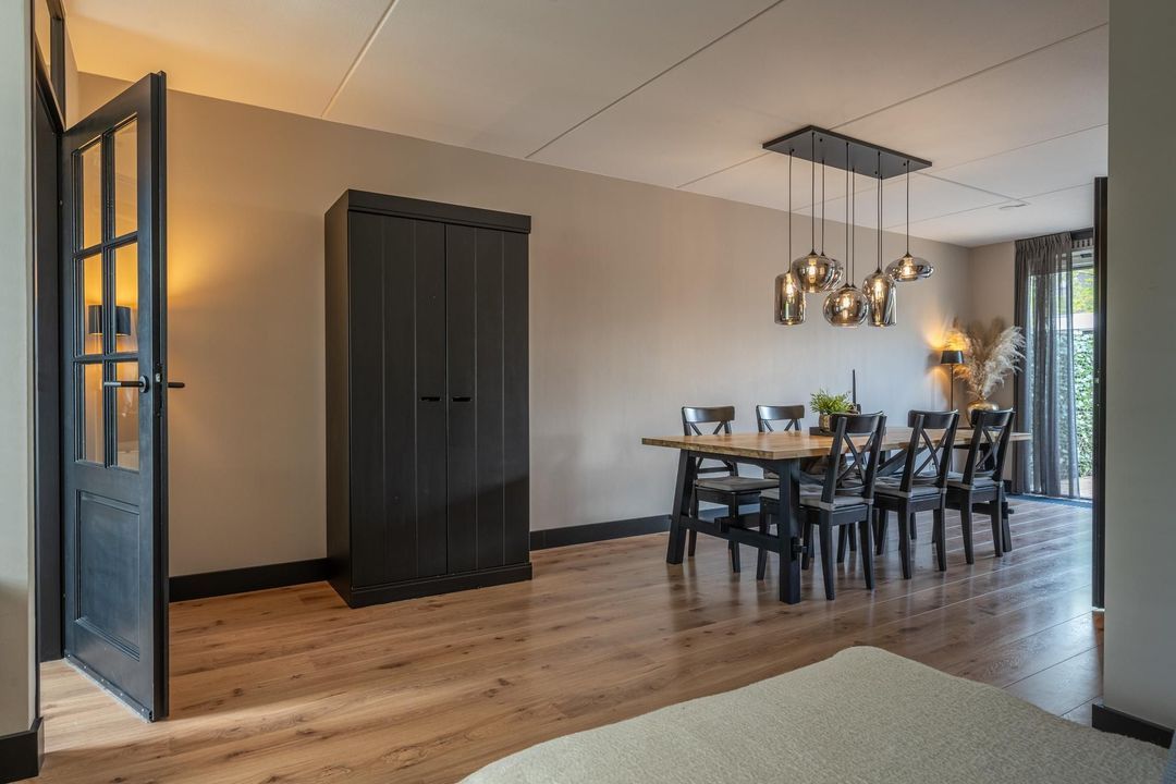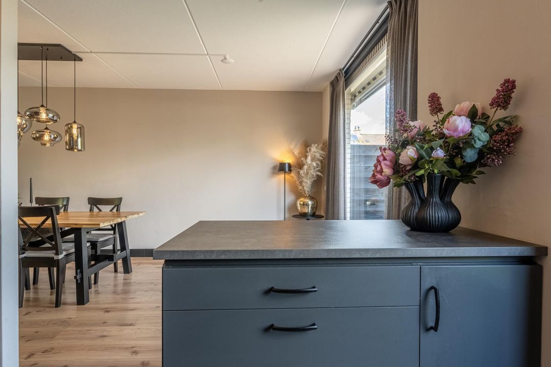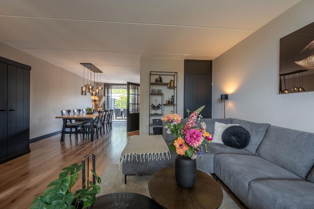 Betreed deze charmante woning via de entree waar zich de meterkast bevindt, en stap rechtstreeks de hartelijke woonkamer binnen. Hier word je verwelkomd door een knusse zithoek aan de voorzijde en een uitnodigende eethoek aan de achterzijde, perfect voor gezellige diners. De open keuken in L-vorm is van alle gemakken voorzien, waaronder een inductiekookplaat met afzuigkap, een combi-oven, koel-vriescombinatie, vaatwasser en een close-in boiler. Vanuit de keuken stap je zo de tuin in, ideaal voor zomerse dagen. Een centraal gelegen hal biedt toegang tot een netjes weggewerkt toilet en de trapopgang naar de eerste verdieping.