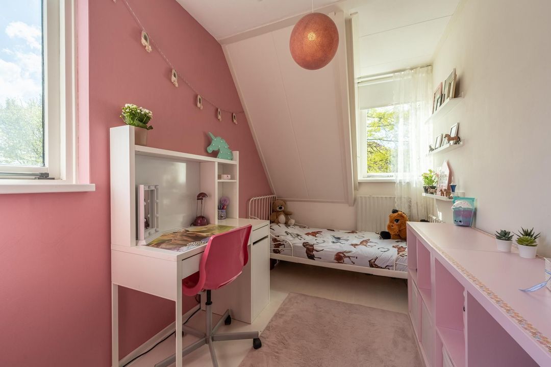 Een royale overloop met opstelling voor wasmachine en droger, cv-ketel en mechanische ventilatie systeem maakt deze verdieping veelzijdig. Het dakraam zorgt voor een overvloed aan natuurlijk licht op de overloop, waar deze goed geschikt is als thuiswerkplek. De vierde slaapkamer, eveneens licht en luchtig dankzij het grote dakraam, biedt volop opbergruimte achter de knieschotten.