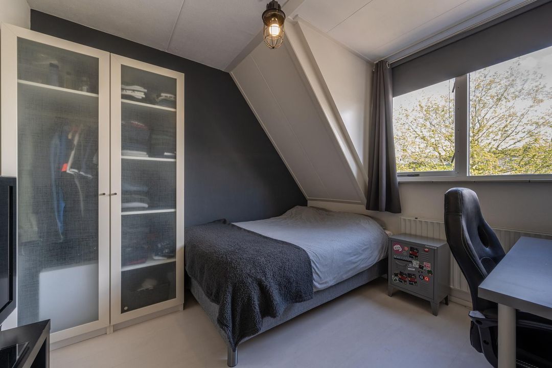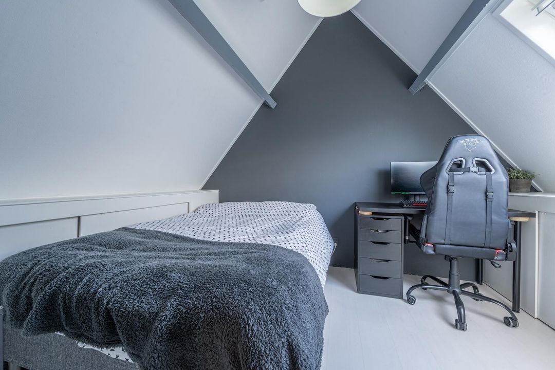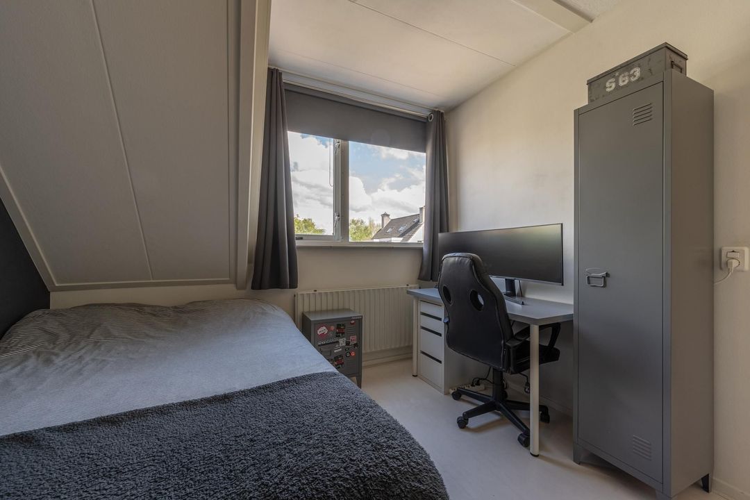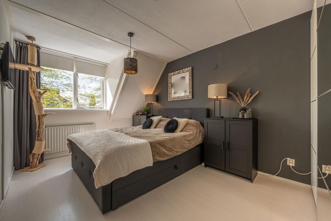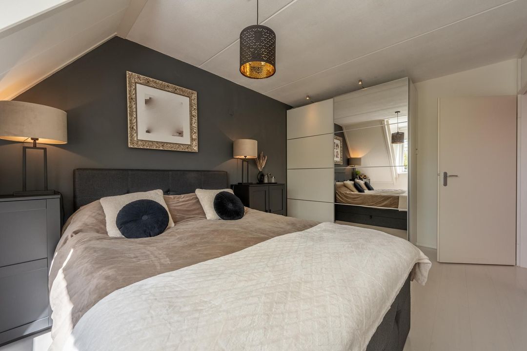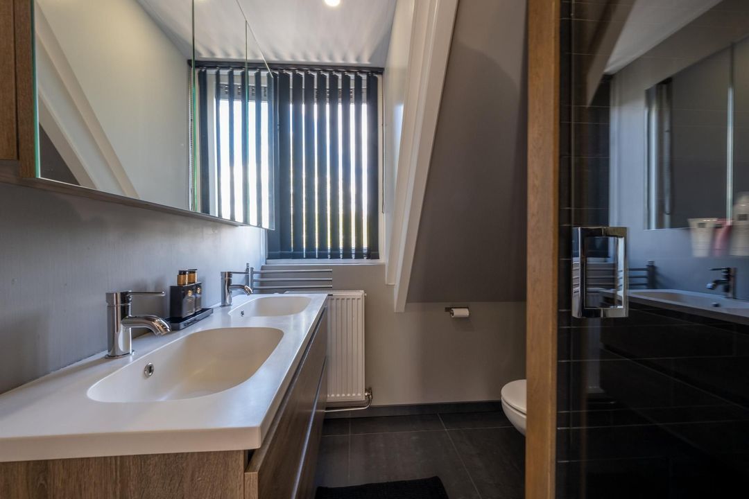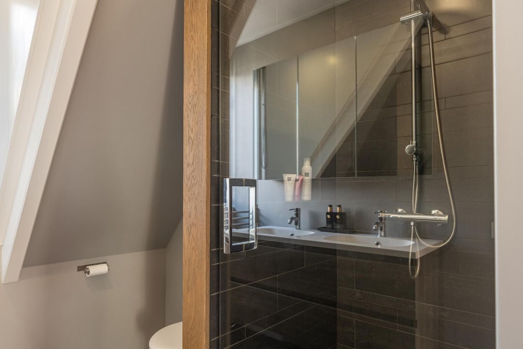 De overloop leidt naar drie ruime slaapkamers, verlicht door ruimtelijke dakkapellen aan zowel de voor- als achterzijde. De badkamer is in 2017 volledig gerenoveerd en biedt een ware verwennerij met een inloopdouche voorzien van een regendouchekop, een toilet en een dubbele wastafel met spiegelkast, fraai afgewerkt met inbouwspots en een stijlvolle tegelcombinatie in taupe en antraciet.