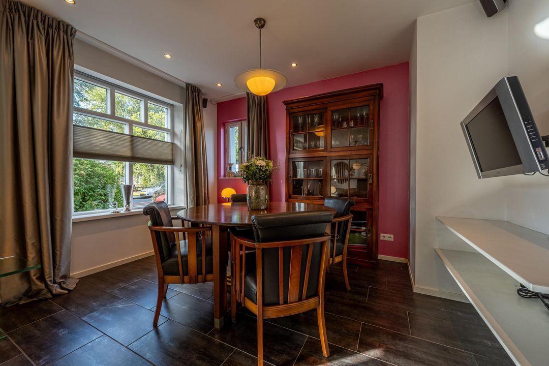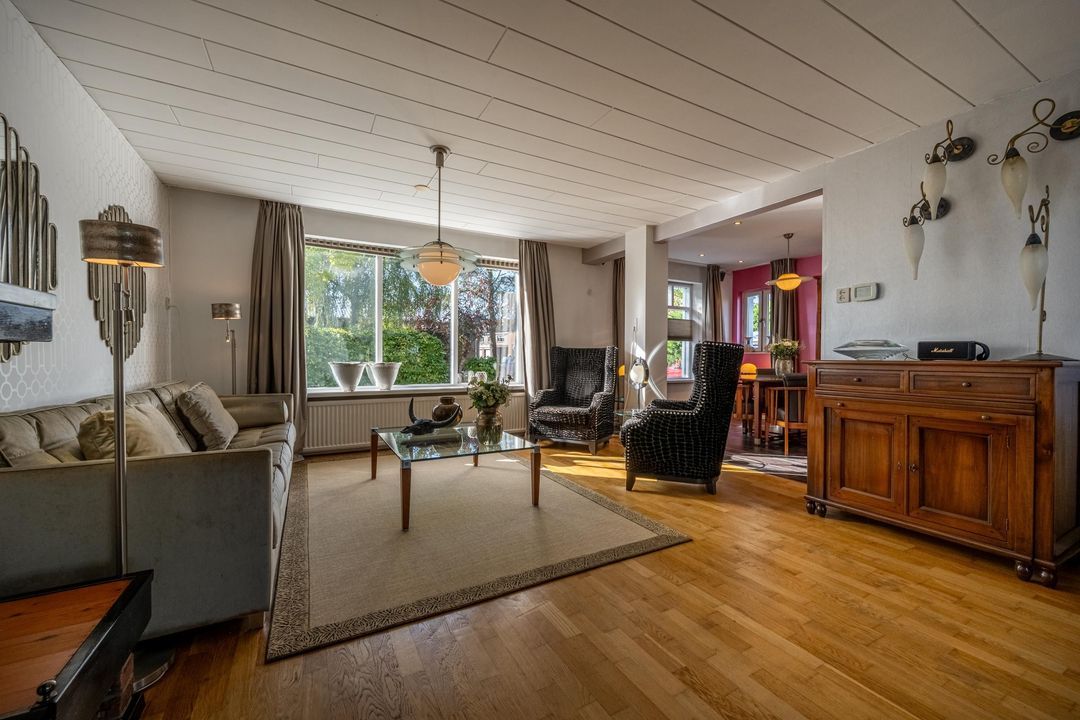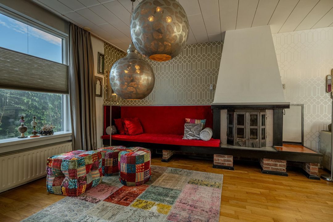 Binnen tref je een warme en sfeervolle woonkamer met houtkachel en een fijn uitzicht op de groene achtertuin. De moderne keuken bevindt zich in de aangebouwde uitbouw aan de achterzijde van de woning. Op de eerste verdieping zijn vier slaapkamers en een nette badkamer met inloopdouche aanwezig.