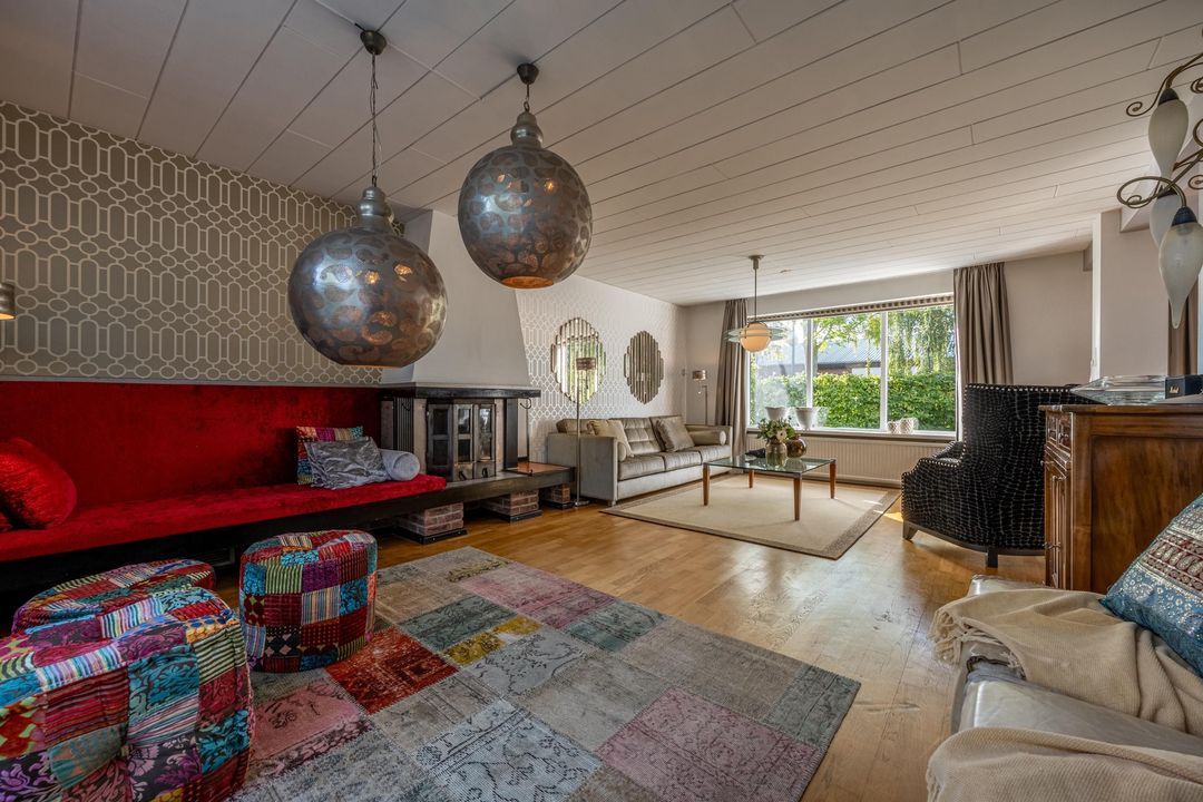 De woonkamer ligt aan de voorzijde van de woning en heeft een warme, uitnodigende sfeer. De houtkachel zorgt voor extra gezelligheid op koude dagen, terwijl je vanuit de zithoek leuk uitkijkt over de groene voortuin. Er is voldoende ruimte voor een comfortabele zithoek én een eethoek of speelhoek voor de kinderen.