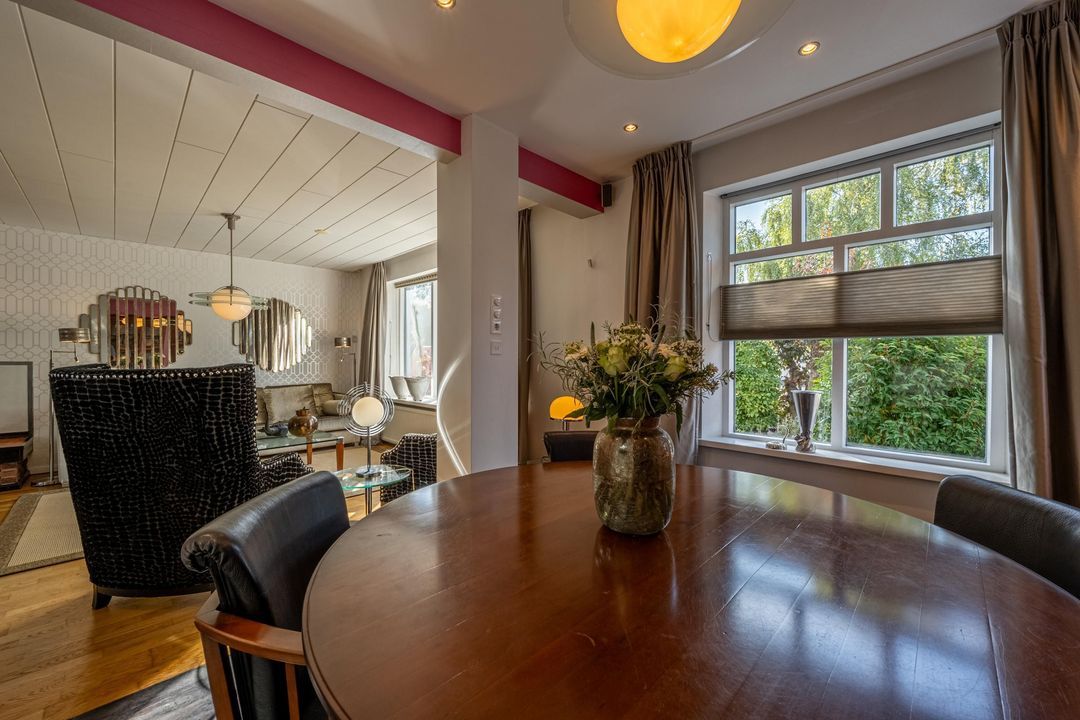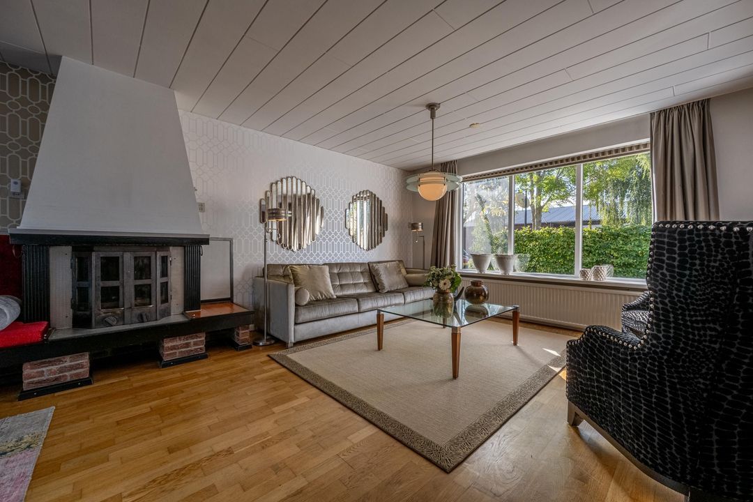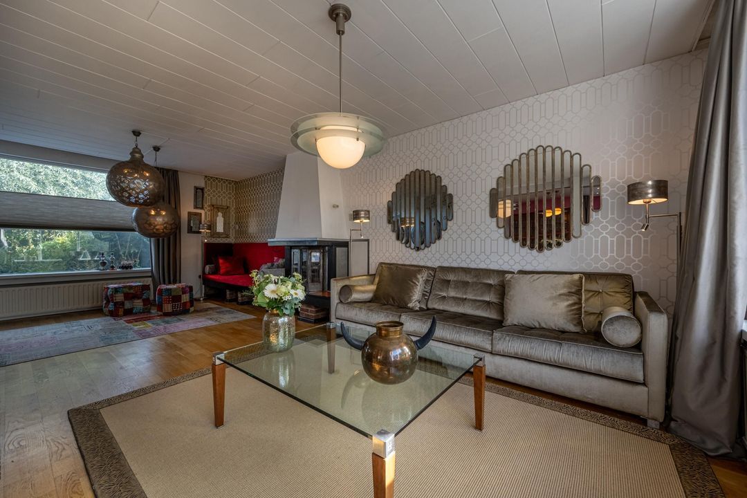 Binnen tref je een warme en sfeervolle woonkamer met houtkachel en een fijn uitzicht op de groene achtertuin. De moderne keuken bevindt zich in de aangebouwde uitbouw aan de achterzijde van de woning. Op de eerste verdieping zijn vier slaapkamers en een nette badkamer met inloopdouche aanwezig.