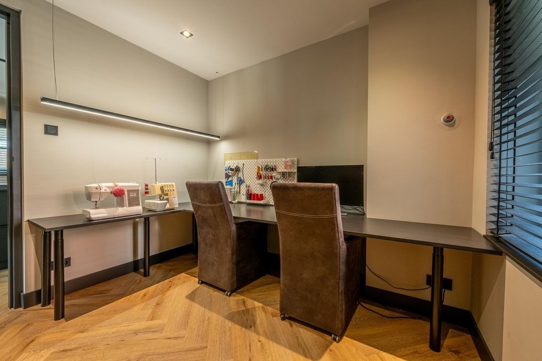 Op zowel de begane grond als de tweede verdieping is er ruimte voor een thuiskantoor. Boven geniet je van rust en uitzicht tijdens een koffiebreak, terwijl je beneden juist makkelijk betrokken blijft bij het gezinsleven.