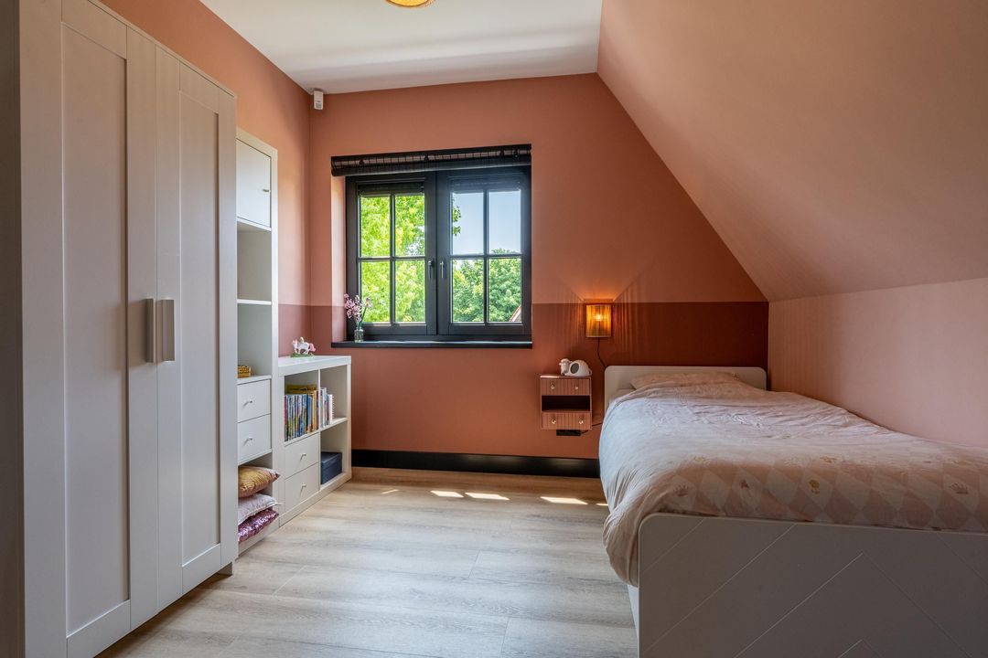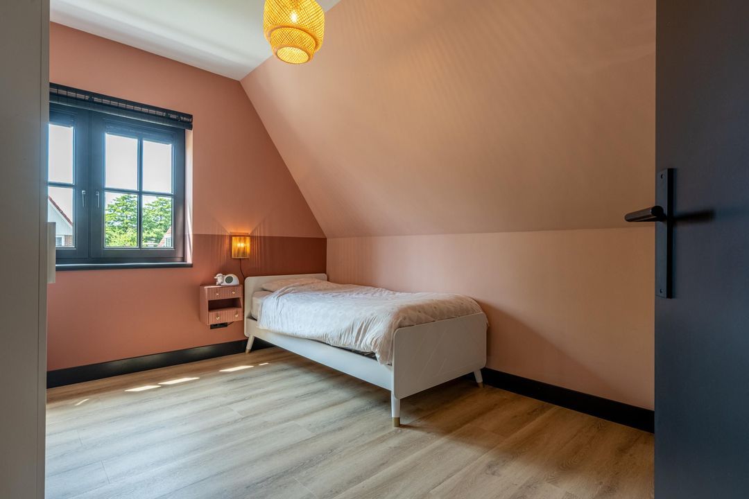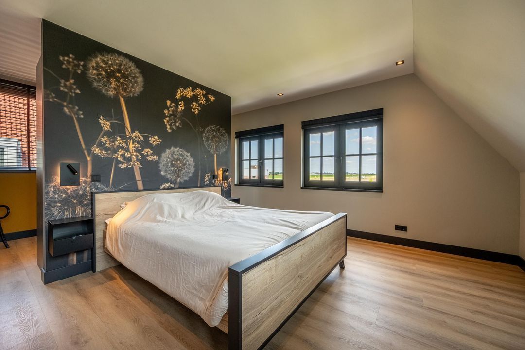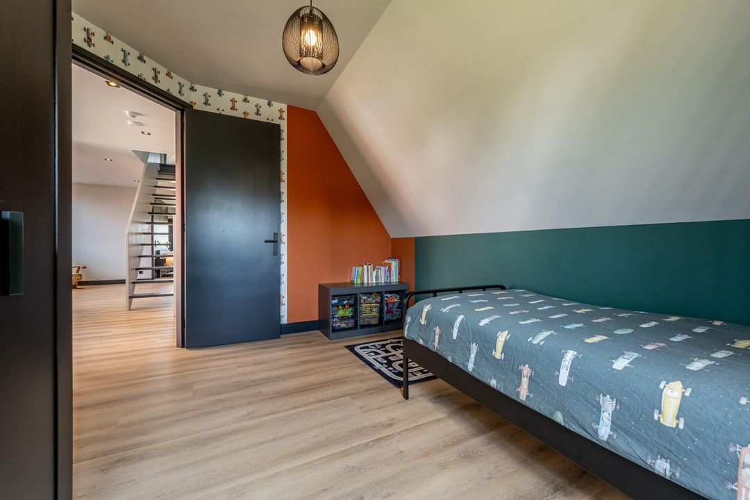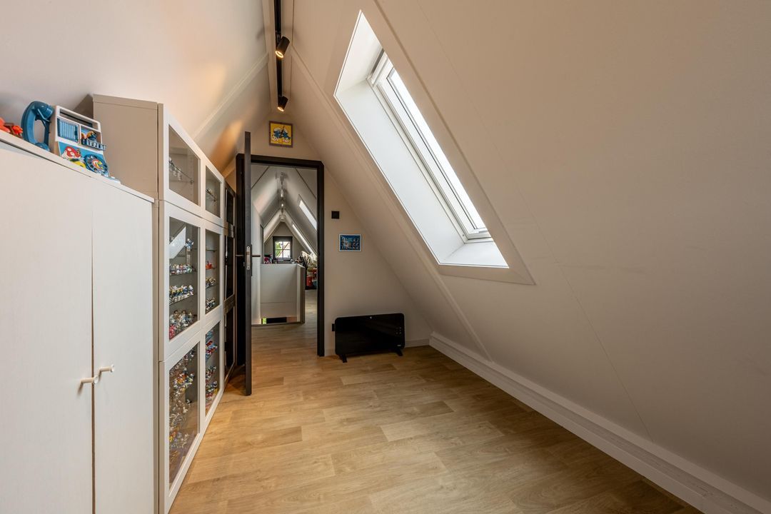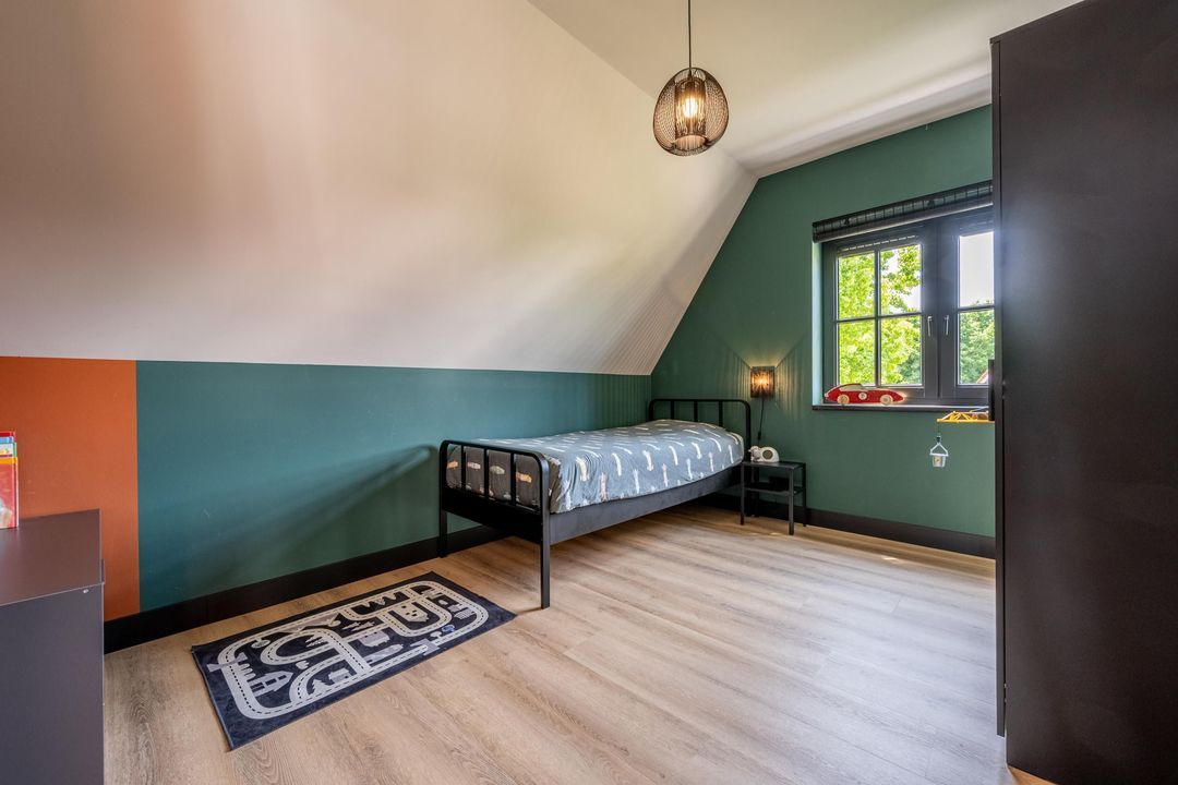 Op de eerste verdieping bevinden zich vier volwaardige slaapkamers, stuk voor stuk keurig afgewerkt en goed van formaat. De masterbedroom aan de achterzijde is een fijne, rustige plek met een prachtig uitzicht over de landerijen. Heerlijk wakker worden met het hele jaar door prachtige zonsopkomsten, dat gaat nooit vervelen! Een slimme indeling met een afgeschermd kastgedeelte zorgt hier voor extra comfort. Aan de voorzijde liggen twee vrijwel identieke slaapkamers. De vierde slaapkamer ligt aan de zijkant van de woning en is voorzien van een dakkapel, wat zorgt voor extra ruimte. Wil je gelijkvloerswonen? Op de begane grond kan van het kantoor een slaapkamer gemaakt worden.