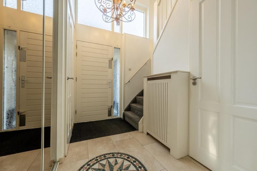 Direct bij binnenkomst valt de verzorgde afwerking, de lichtinval en de ruimte de bezoeker op. In de hal zijn een modern toilet met wandcloset, een meterkast met 7 groepen plus een fornuisgroep en een garderobekast met schuifdeuren opgenomen.