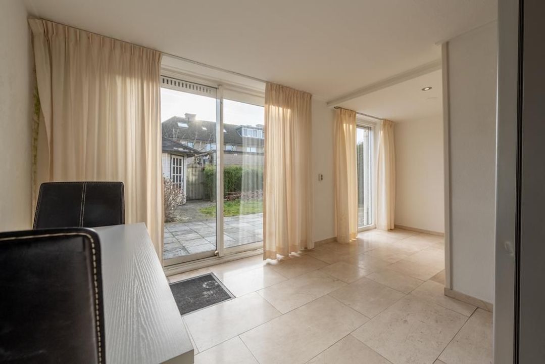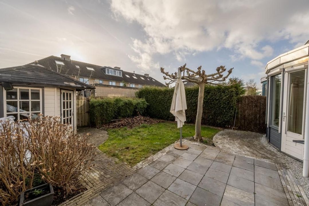 Verrassend is de extra tuinkamer met schuifpui waar u in het vroege voorjaar of in de winter achter glas heerlijk van de zon kunt genieten. Vanuit de tuinkamer is de inpandige berging toegankelijk.