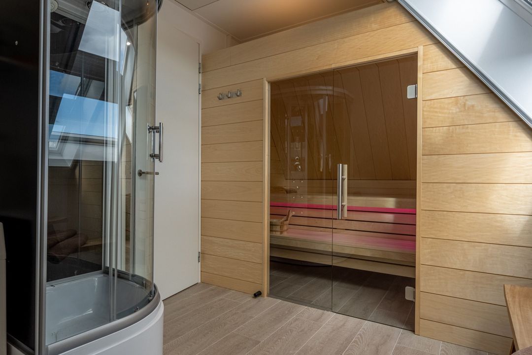 Deze verdieping biedt volop ruimte en comfort. De royale relaxruimte is een bijzondere blikvanger en beschikt over een op maat gemaakte sauna en een extra douchecabine – ideaal voor ontspanning na een lange dag.