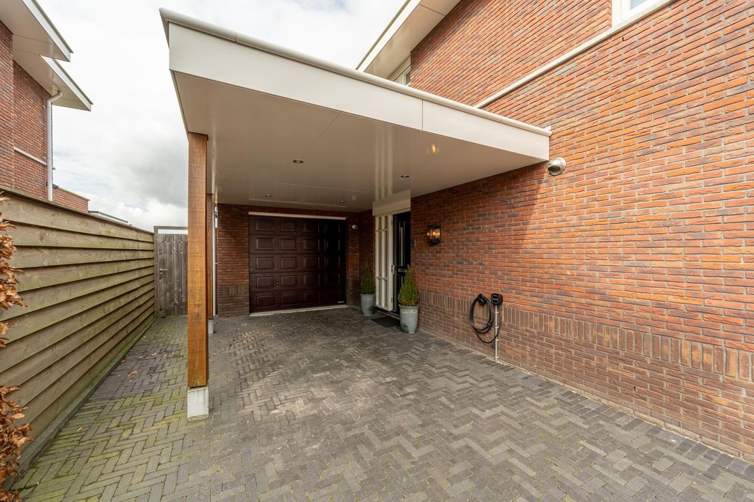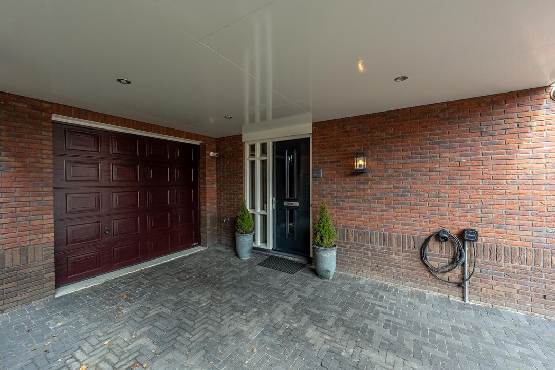 Aan de voorzijde van de woning bevindt zich een carport met verlichting en rondom de woning is fraaie gevelverlichting aangebracht.