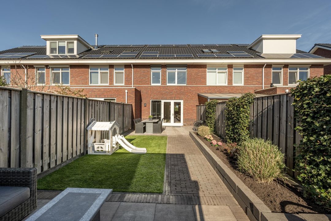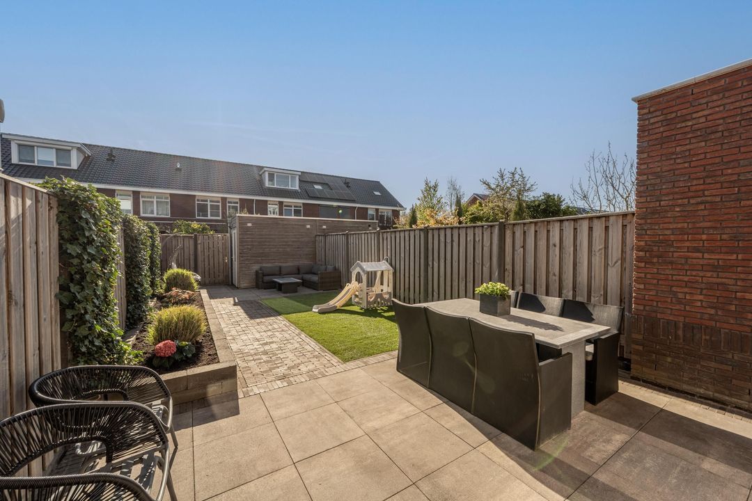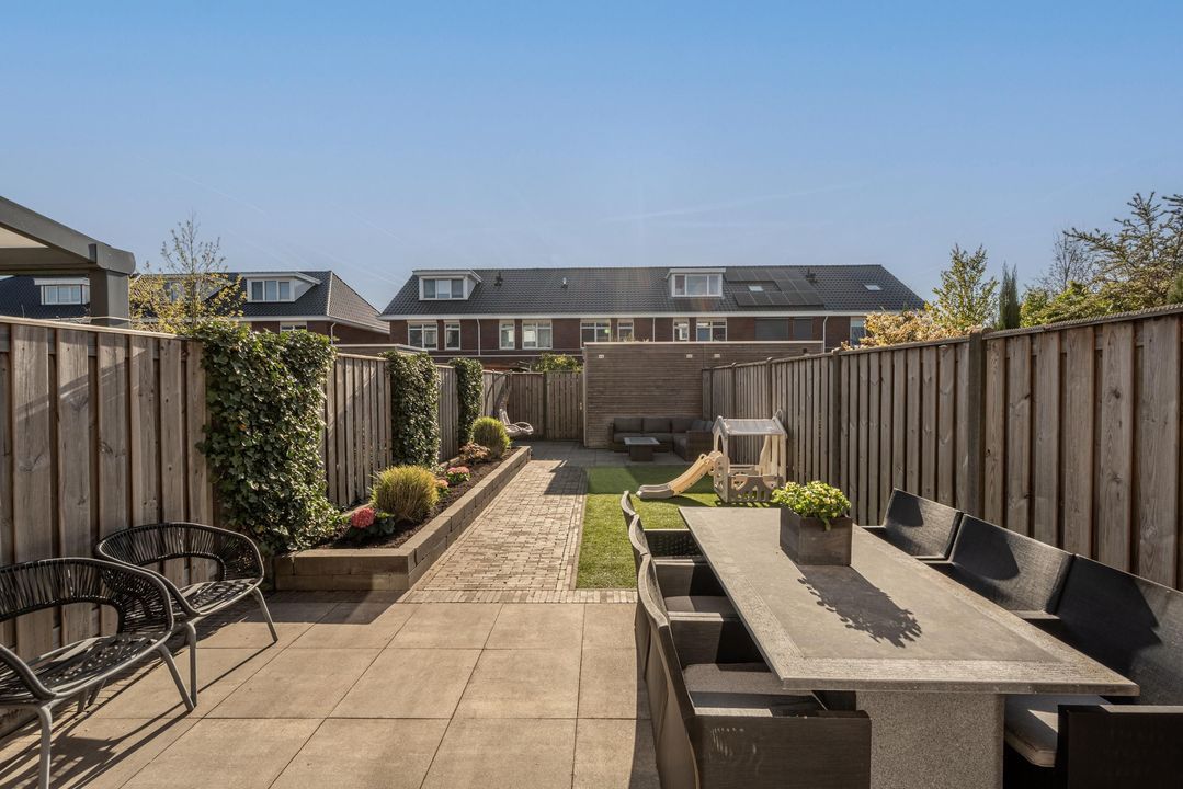 De woning beschikt over een verzorgde voor- en achtertuin. De achtertuin is onderhoudsvriendelijk aangelegd met een terras en hoogwaardig kunstgras. Dankzij de diepte van de tuin is er tot circa 19:00 uur nog volop zon aanwezig. De tuin is volledig omsloten, bereikbaar via een achterom en voorzien van een berging met elektra.