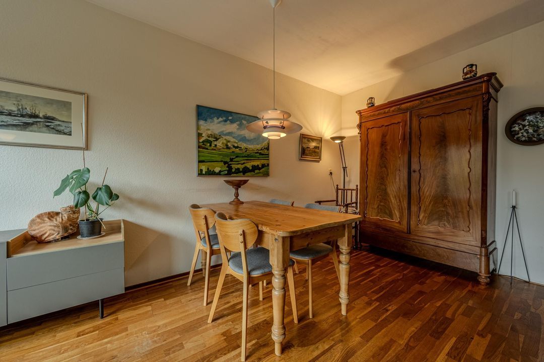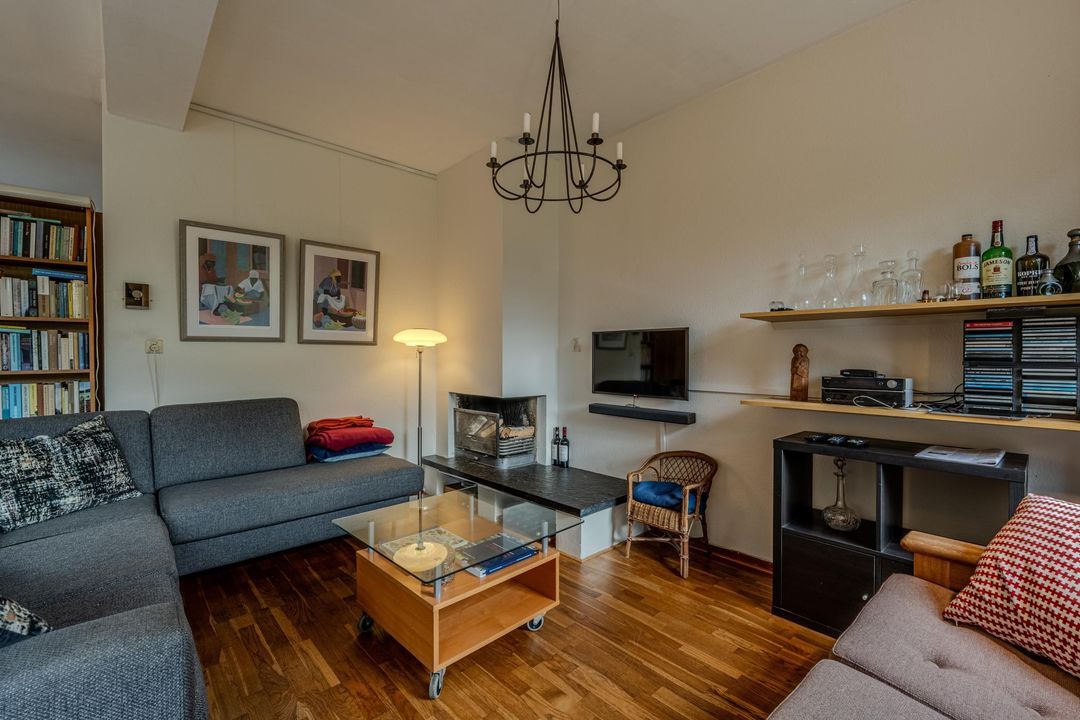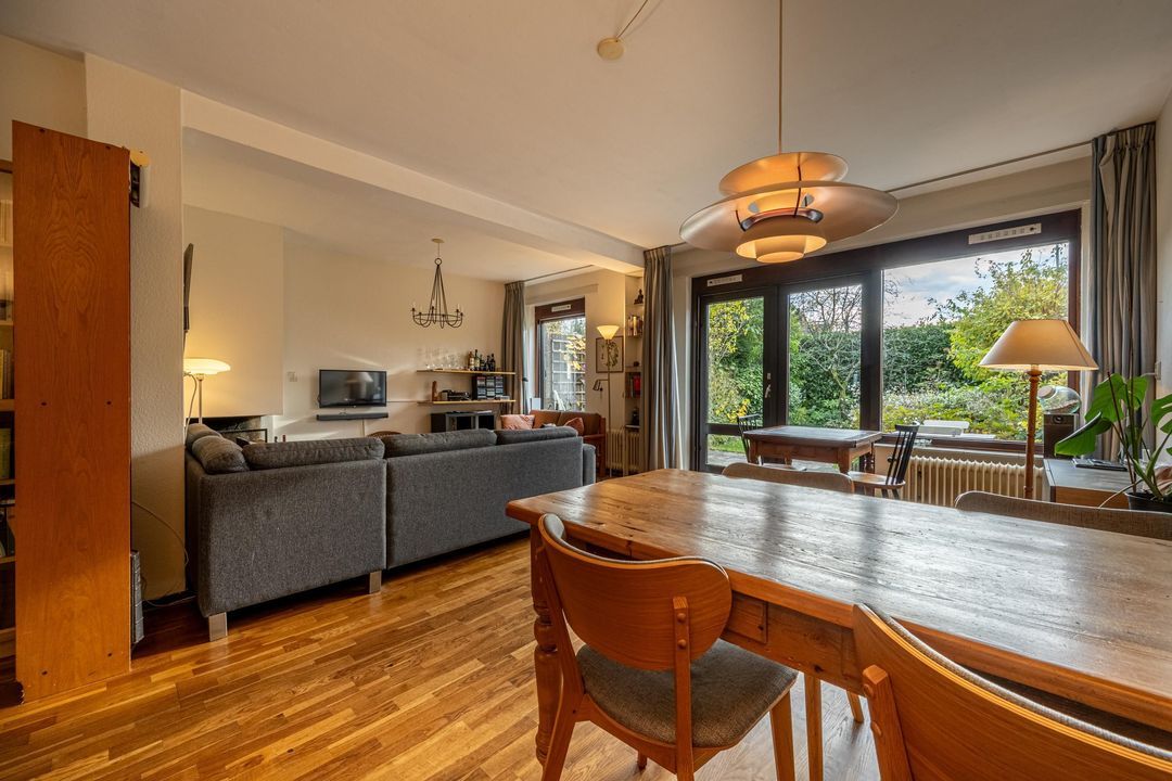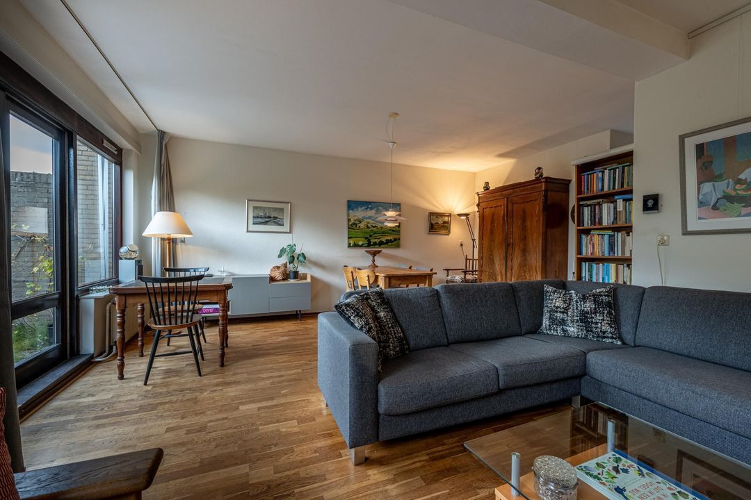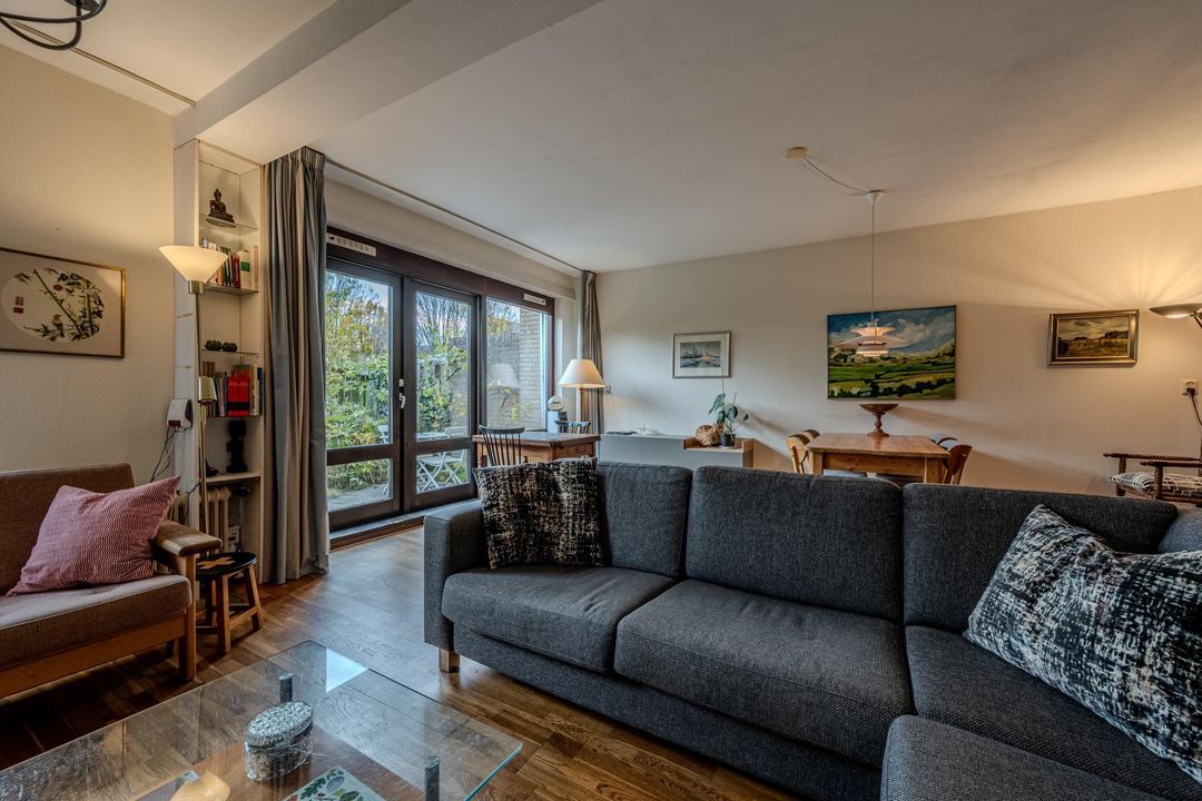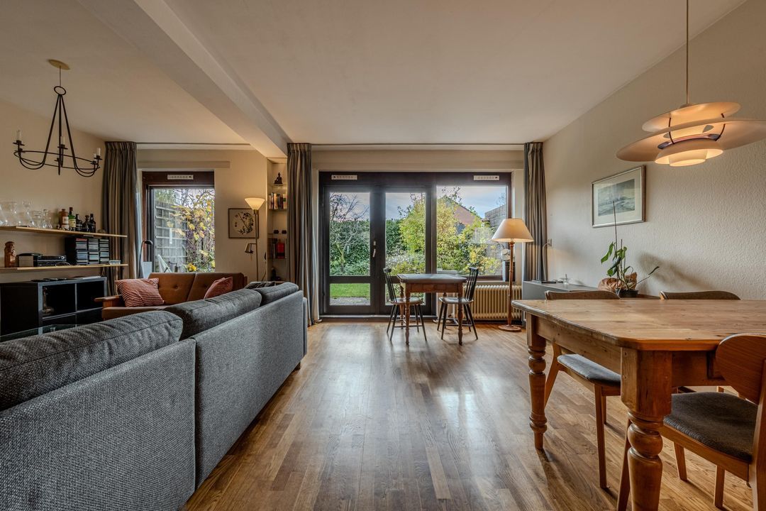 De woonkamer bevindt zich aan de achterzijde en is heerlijk licht dankzij de grote pui naar de tuin. De open haard vormt het sfeervolle middelpunt van de ruimte, terwijl het lamelparket zorgt voor een verzorgde uitstraling. Vanuit de woonkamer stap je direct de zonnige achtertuin in.