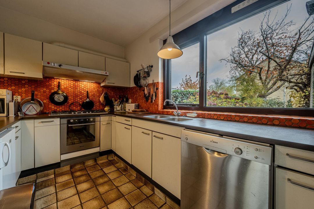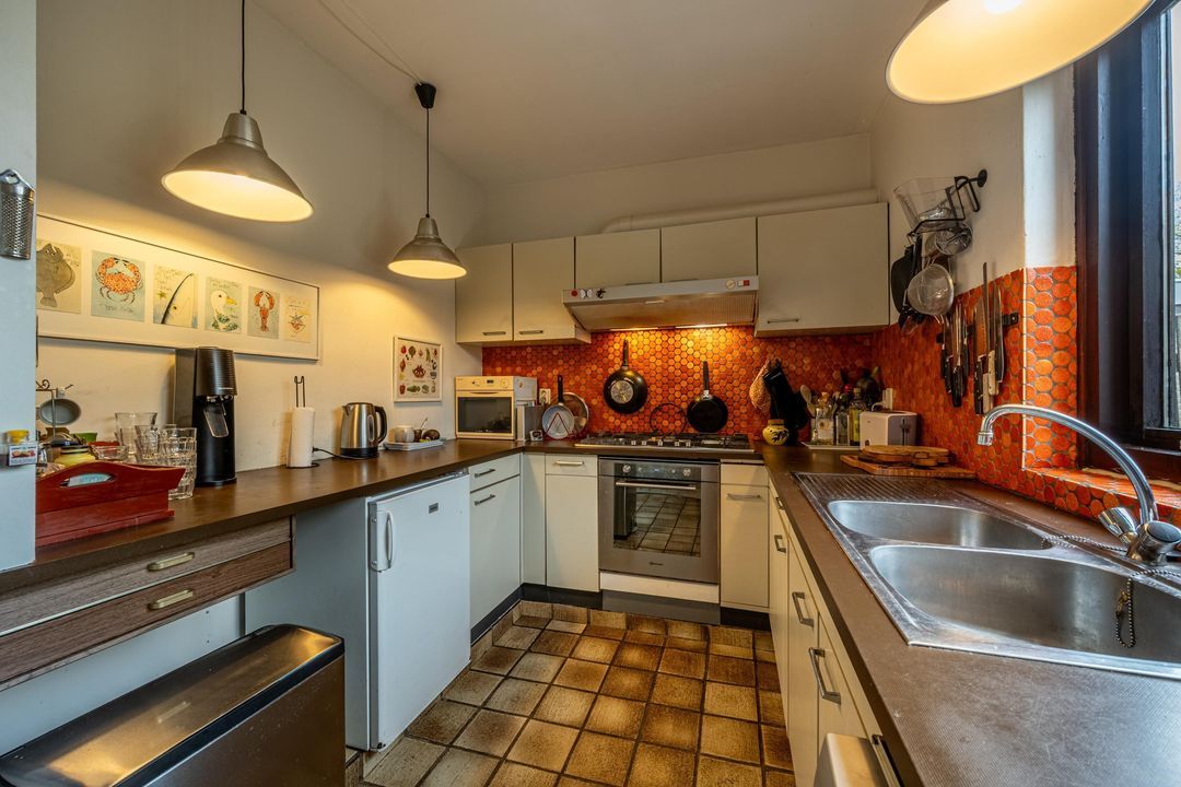 De keuken ligt aan de voorzijde van de woning en is voorzien van plavuizen, een dubbele spoelbak, vaatwasser, oven, 5-pits gasfornuis, koelkast en een close-in boiler. Er is voldoende ruimte om hier een gezellige woonkeuken te creëren.