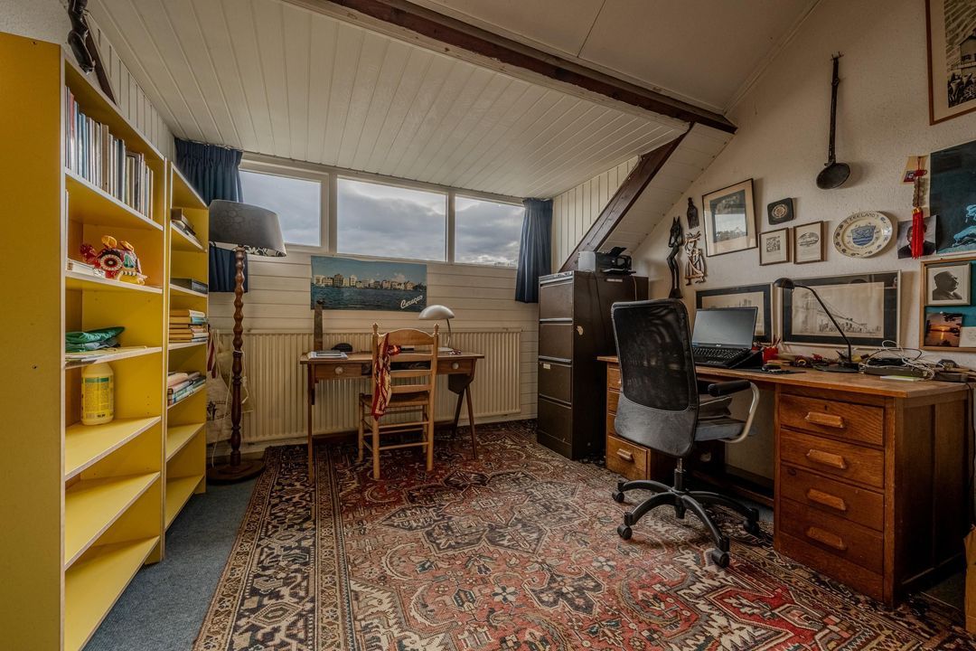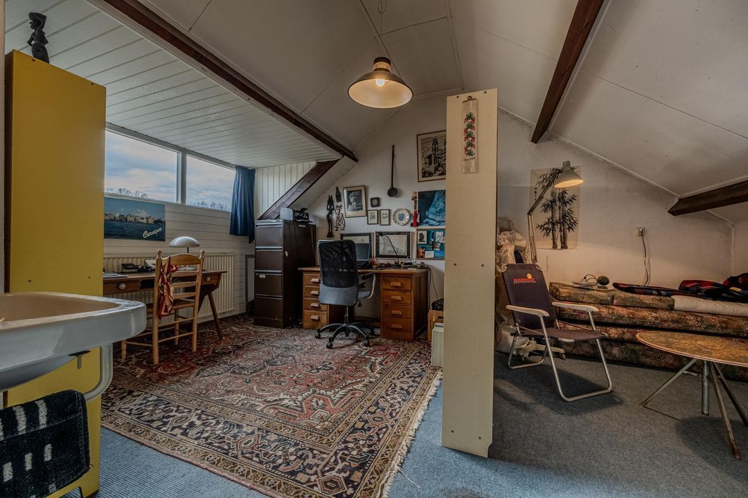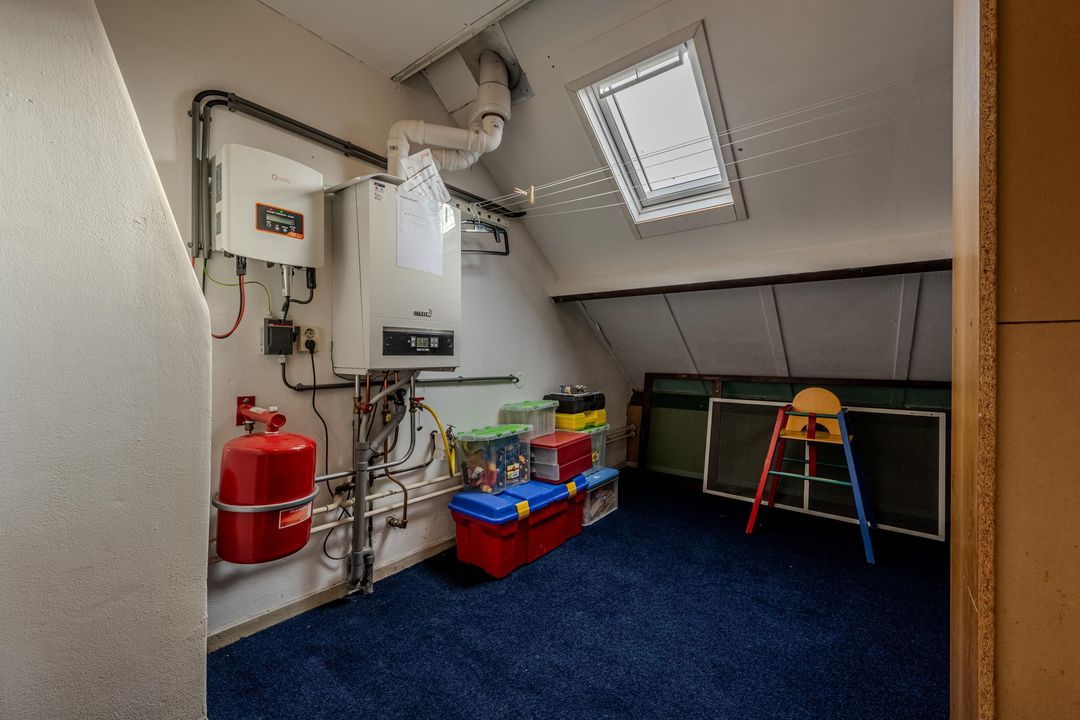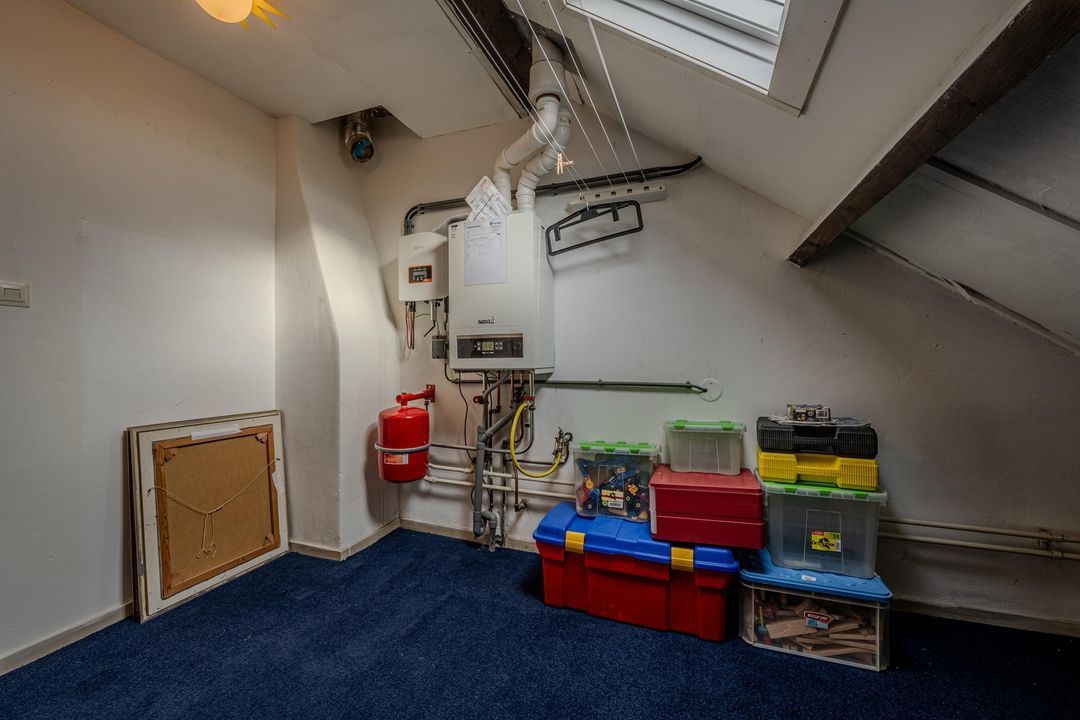 De zolderverdieping is verrassend ruim. Op de voorzolder ligt vloerbedekking en zijn knieschotten aanwezig voor extra opbergruimte. Hier vind je ook de cv-installatie en de verdeler voor de zonnepanelen. De ruimte is praktisch en kan daarnaast uitstekend dienen als berging of hobbyruimte.
