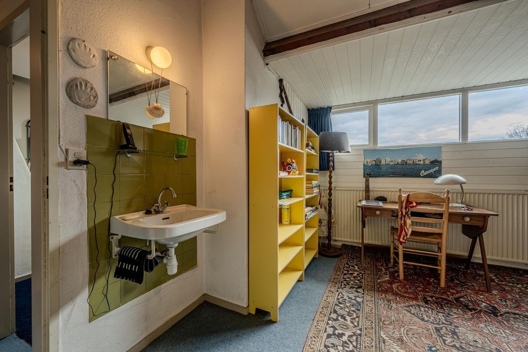De zolderkamer is ruim en voorzien van een dakkapel, radiator, fontein, vloerbedekking en eveneens knieschotten voor extra bergruimte. Dankzij de lichtinval is dit een fijne slaapkamer of werkruimte.