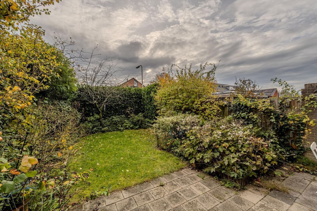 De achtertuin ligt op het zuiden en beschikt over een gazon, bestrating en een handmatig zonnescherm. De ligging is ideaal voor wie graag buiten leeft. Je hebt hier de hele dag door zon en voldoende ruimte voor een terras of speelplek. De tuin is netjes onderhouden en biedt volop privacy, terwijl de oprit en garage aan de voorzijde zorgen voor extra gemak en comfort.