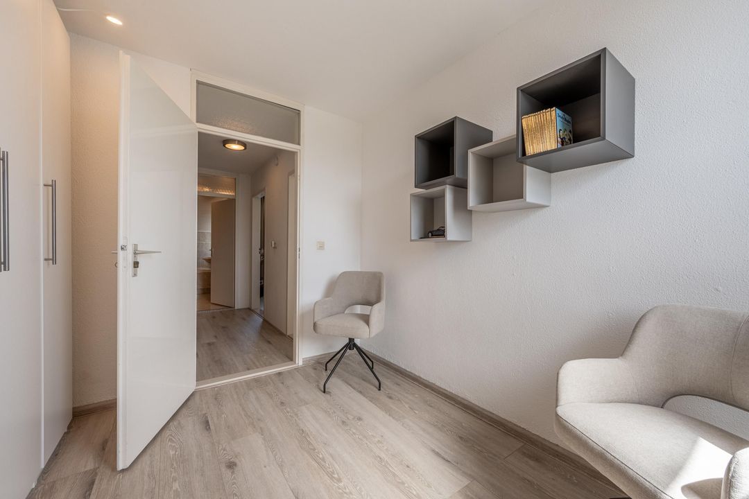 De ouderslaapkamer aan de voorzijde beschikt over een ingebouwde kledingkast met hang- en leggedeelte en een keurige laminaatvloer die is doorgelegd naar de overige slaapkamers. Aan de achterzijde liggen nog twee fijne slaapkamers, ideaal voor kinderen, thuiswerken of logees.
