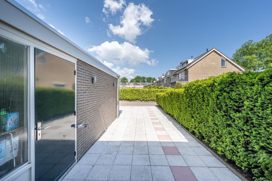 Aan de voorzijde van de woning beschik je over een eigen oprit én toegang tot de garage.