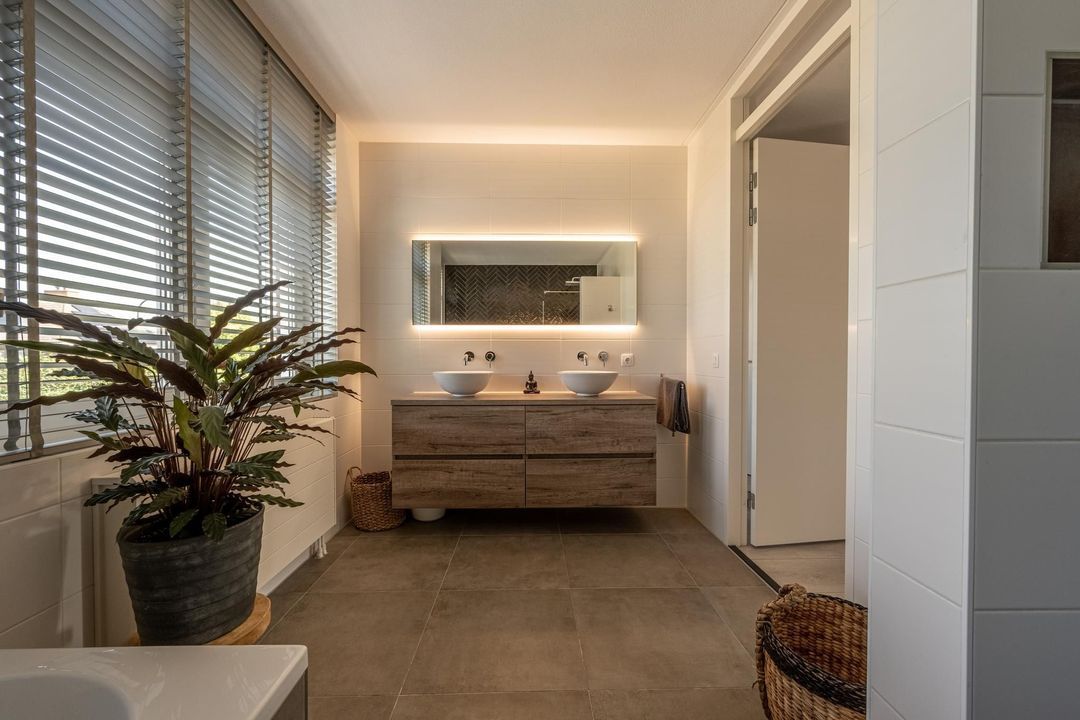 De overloop op de eerste verdieping biedt toegang tot drie ruime slaapkamers, de luxe badkamer en een separaattoilet. De slaapkamers zijn allemaal groot genoeg voor een tweepersoonsbed. De master bedroom is voorzien van airconditioning voor extra comfort. De moderne badkamer beschikt over een heerlijk ligbad, ruime inloopdouche, dubbel wastafelmeubel met moderne waskommen en een verlichte spiegel. Daarnaast is er voor extra privacy een apart toiletruimte met fonteintje.
