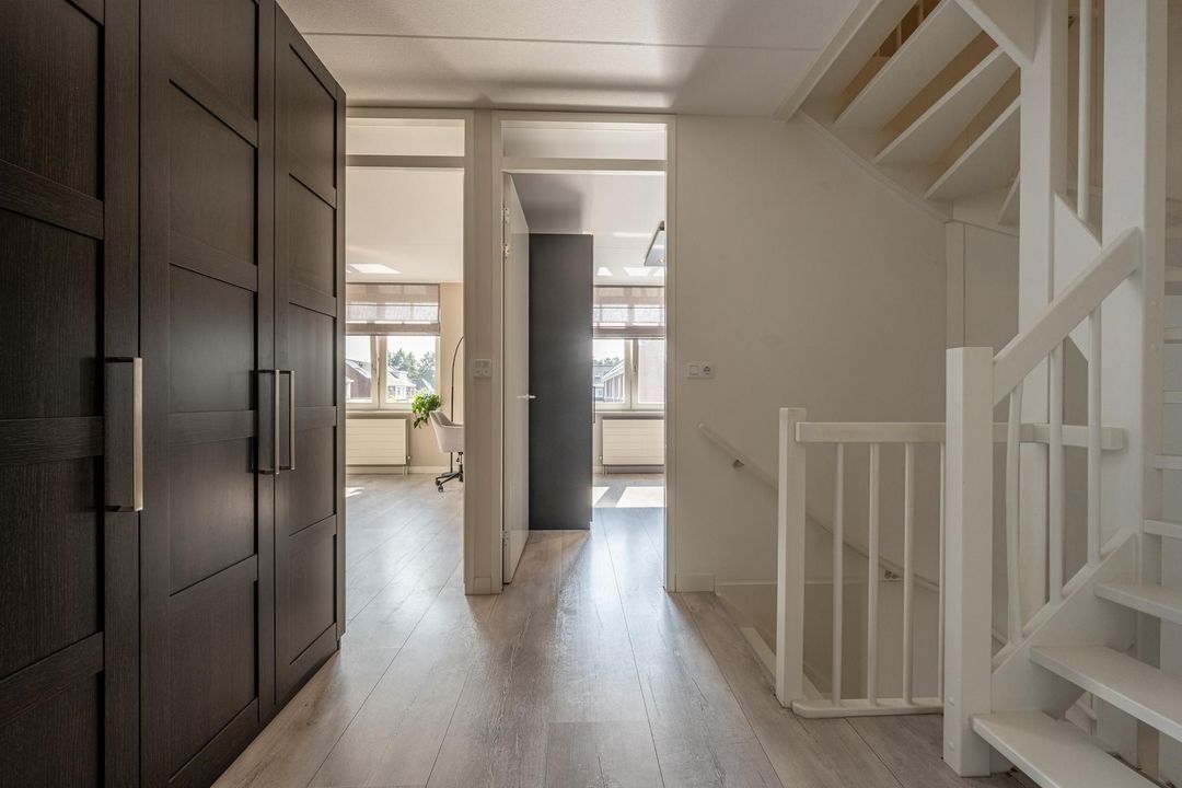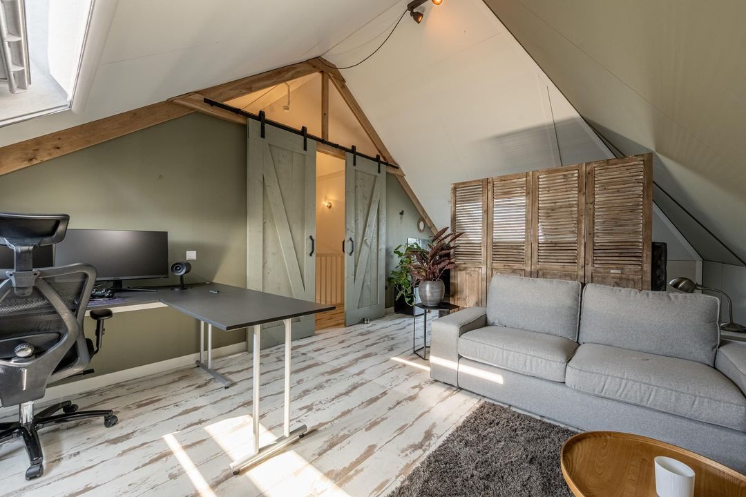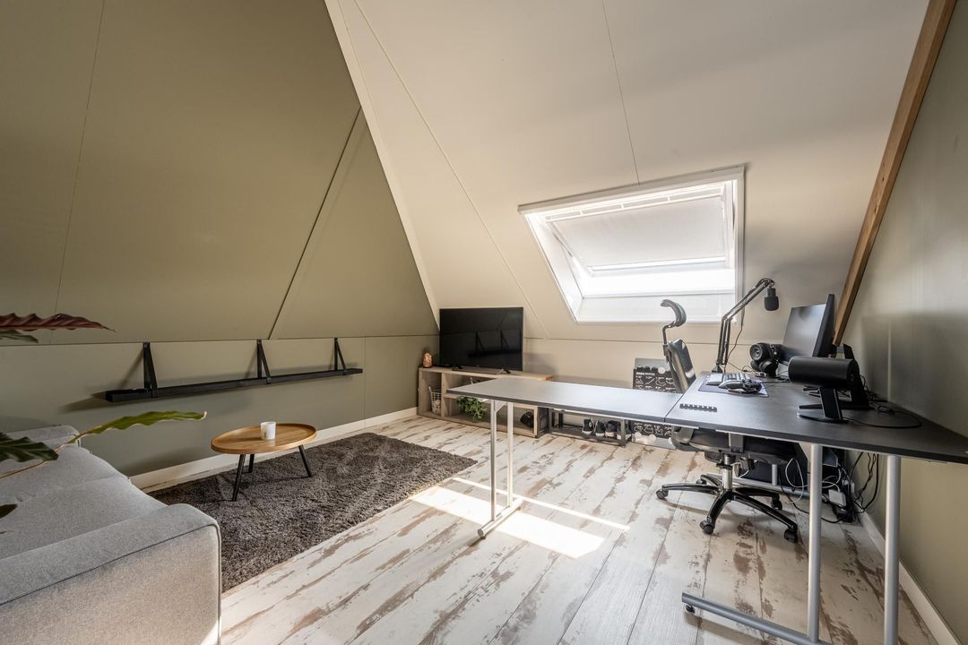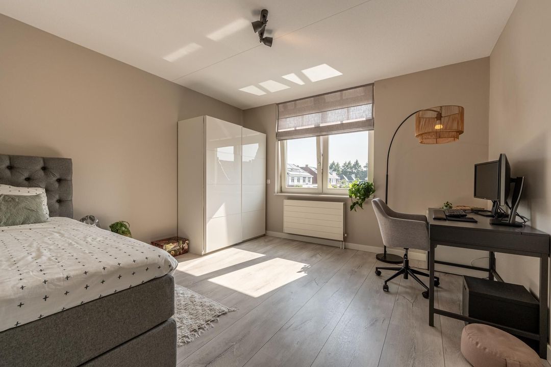 Op de tweede verdieping vind je een ruime overloop met toegang tot de technische ruimte waar de cv-ketel, mechanische ventilatiebox, wasmachine en droger staan opgesteld. Daarnaast is er een handige berging en een vierde, riante slaapkamer met veel lichtinval door twee grote dakramen. Deze slaapkamer beschikt bovendien over een eigen wastafel, ideaal voor een tiener- of logeerkamer.