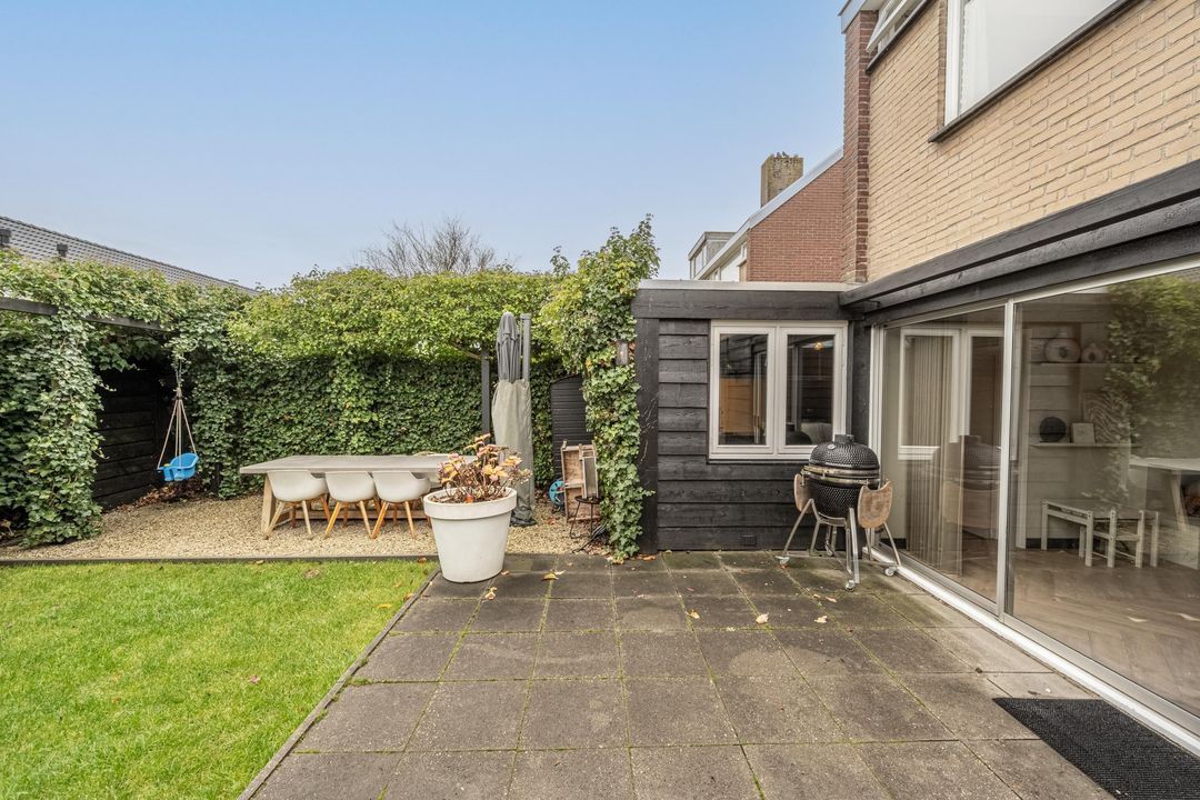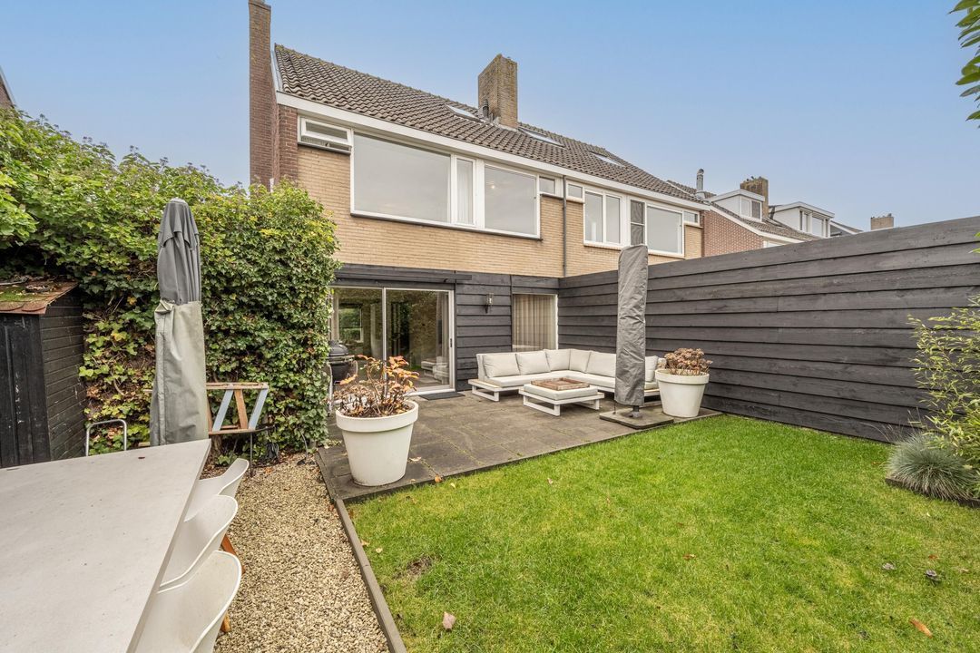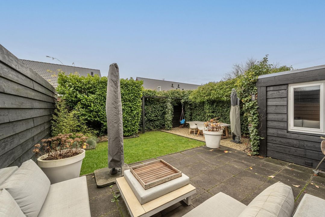 Voor- en achtertuin en eigen oprit voor het parkeren van auto's op eigen terrein. De achtertuin met achterom, is ingericht met sierbestrating en beplanting. Er is meer dan voldoende ruimte om de tuin in te richten met een eettafel en loungeset. De tuin biedt privacy, rust en is een fijne plek om op een zomerse dag te genieten van de zon en het buitenleven.