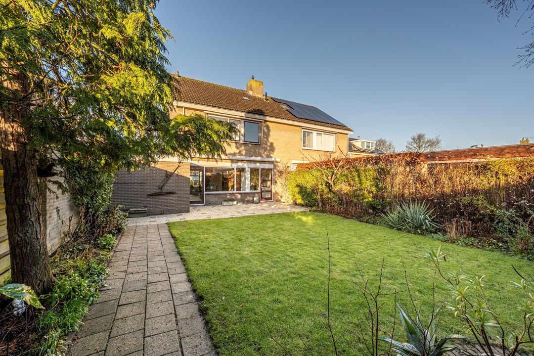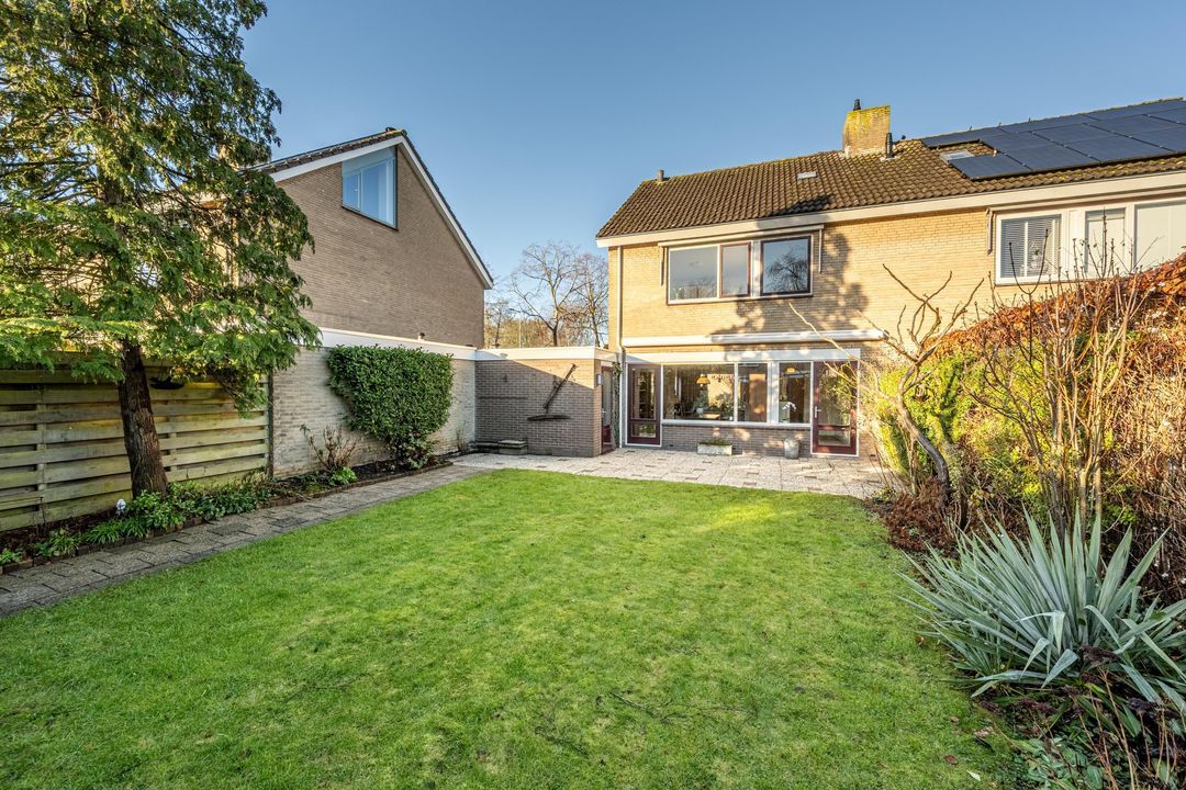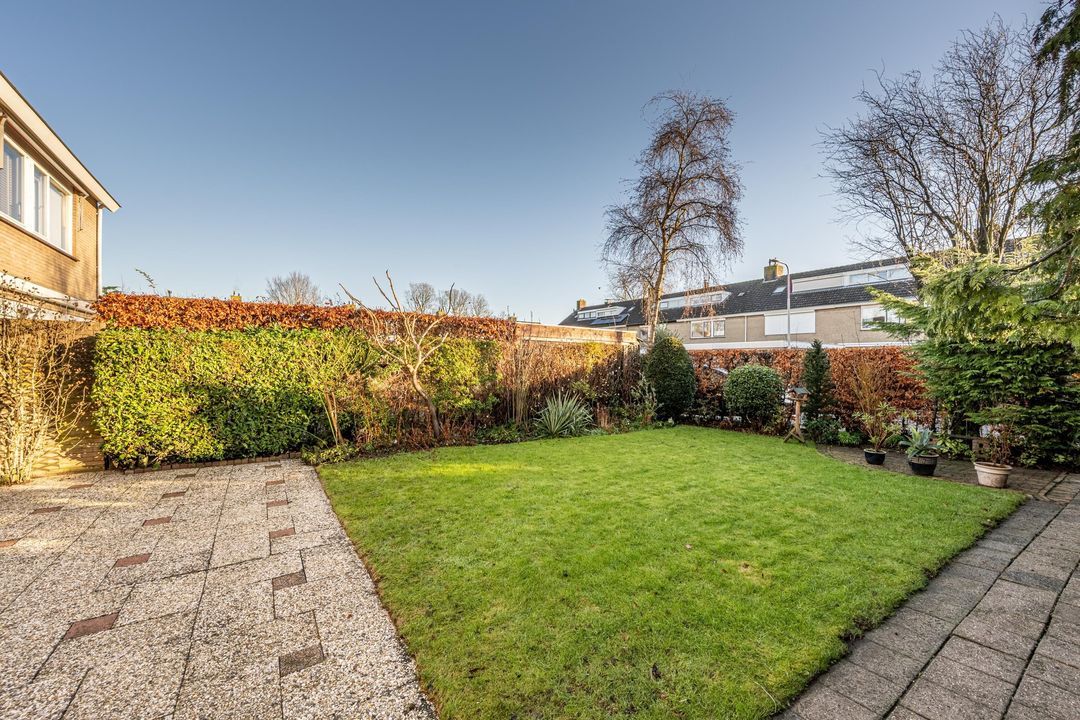 De achtertuin is verzorgd aangelegd en ingericht met een combinatie van bestrating en groen. Door de gunstige ligging is er volop ruimte om gedurende de dag van de zon te genieten. De tuin biedt een prettige mate van privacy en is geschikt voor zowel een terras als speelruimte. Dankzij de achterom is de tuin ook praktisch in gebruik. Vanuit de tuin is de garage direct bereikbaar.