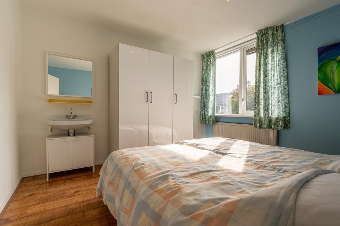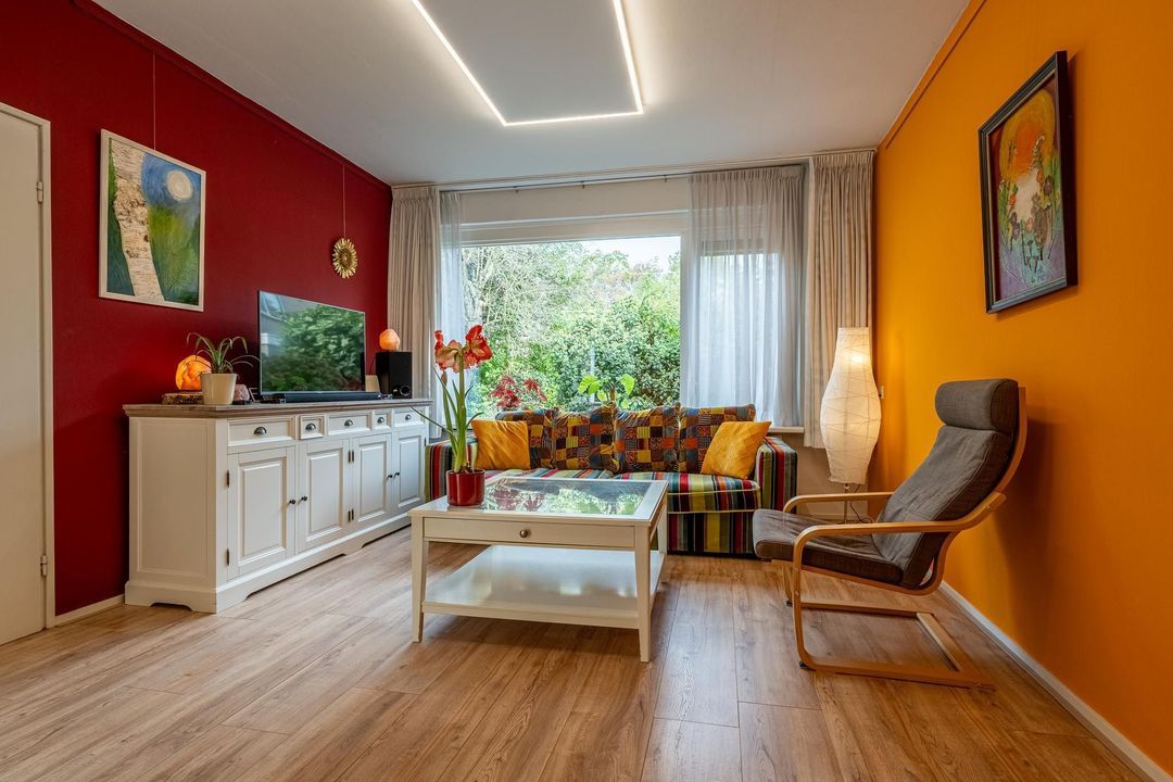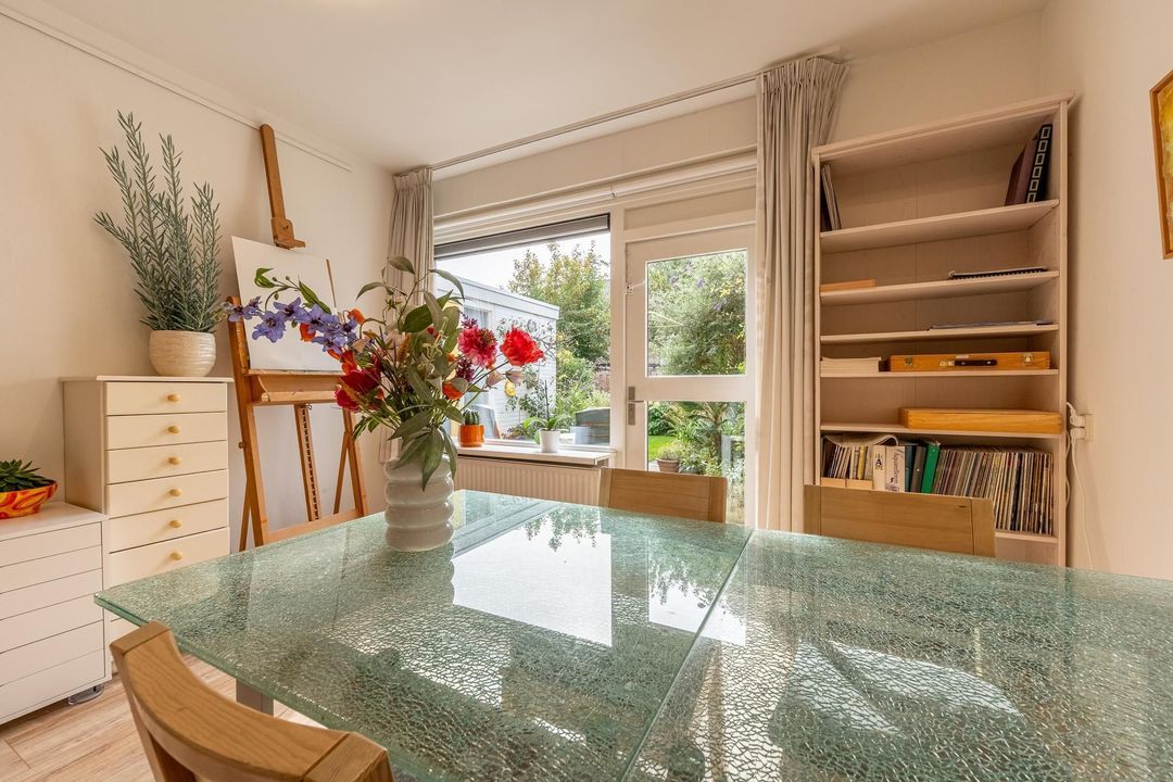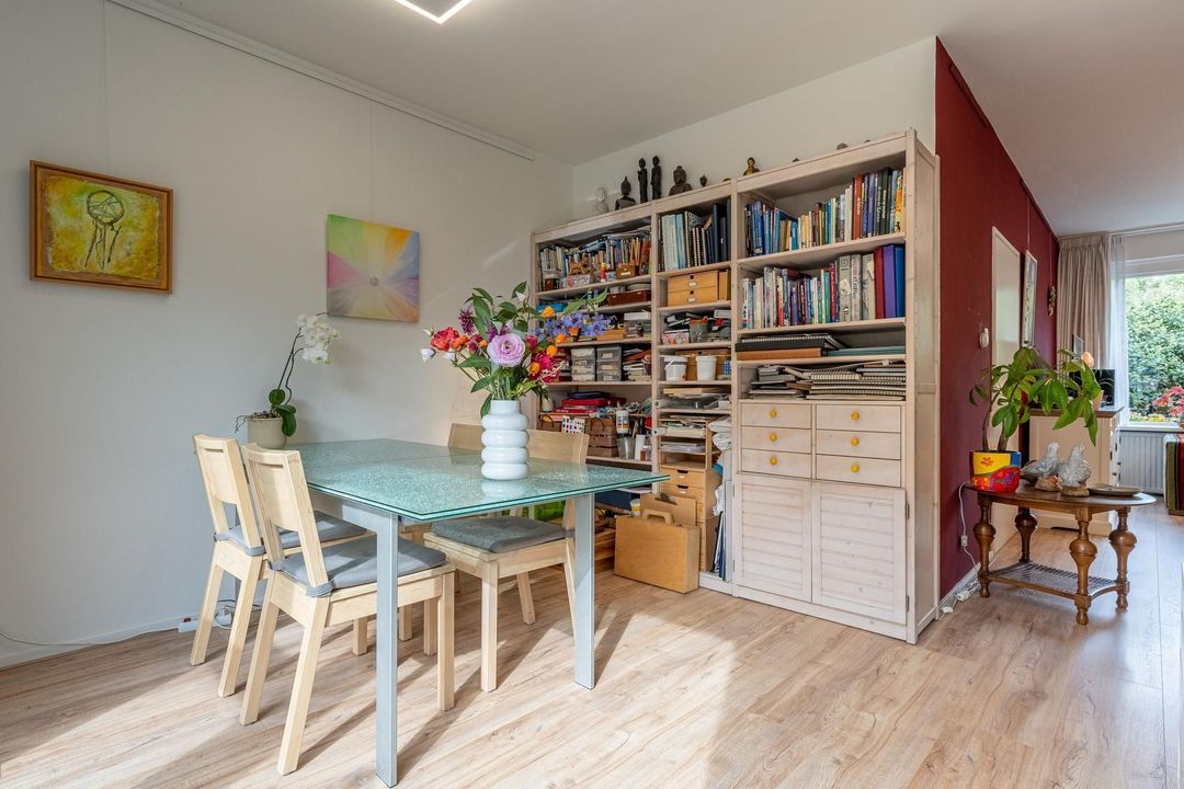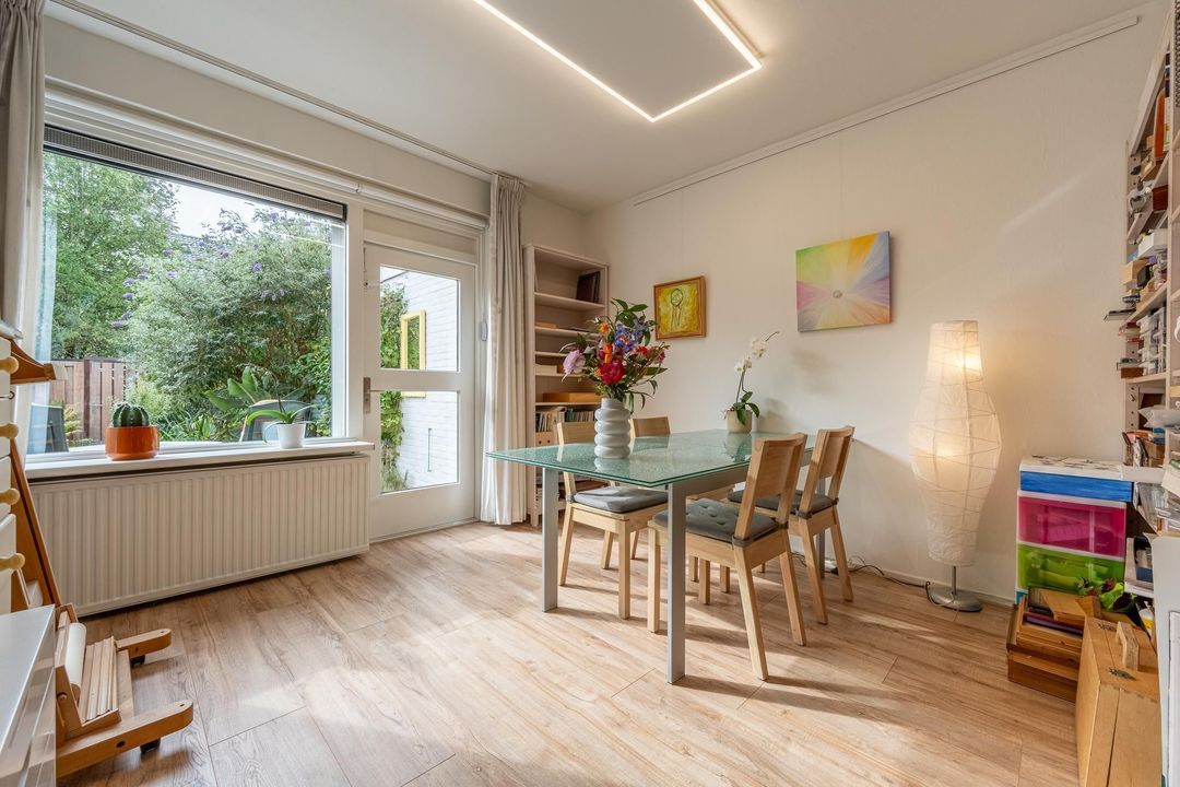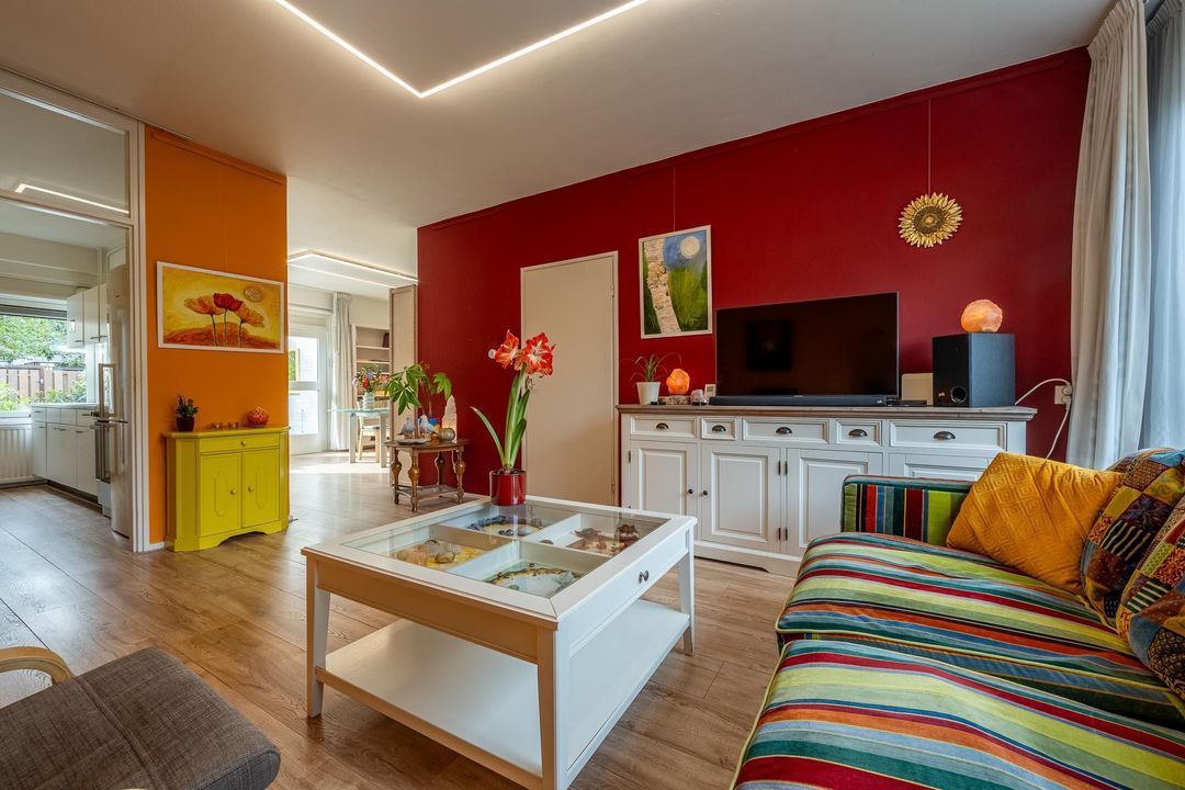 De woonkamer valt op door zijn speelse indeling en de overvloed aan natuurlijk licht. Met een aparte zit- en eethoek biedt deze ruimte de mogelijkheid tot ontspanning met een goed boek, samenkomst met vrienden en familie, of gewoon het genot van alledaagse momenten. De woonkamer is veelzijdig en past perfect bij diverse levensstijlen.