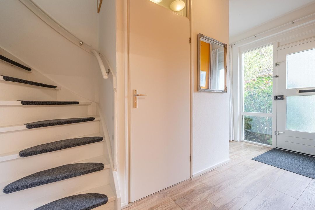 Bij het betreden van deze gezinswoning wordt je verwelkomd door een goed doordachte en praktische indeling. De entree biedt directe toegang tot de meterkast (geüpgraded in 2022), een net hangtoilet met fonteintje en een handige trapkast voor het opbergen van voorraad en schoonmaakspullen.
