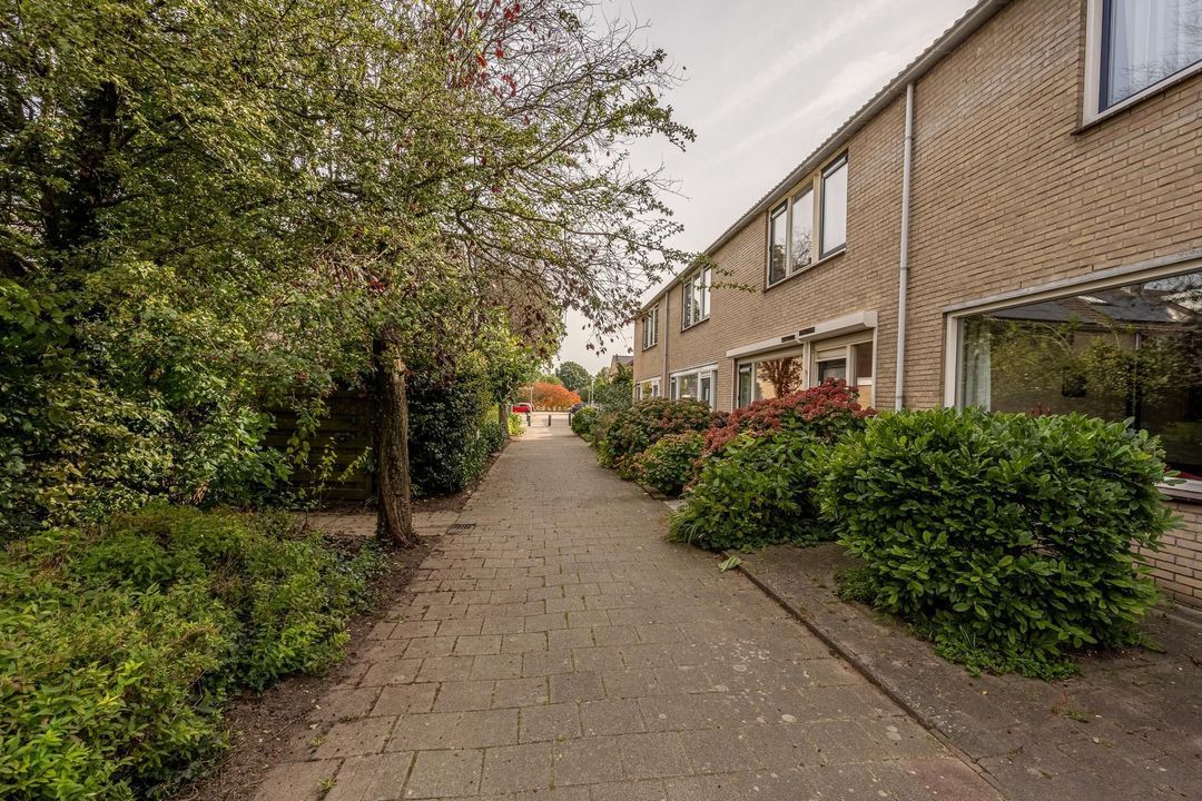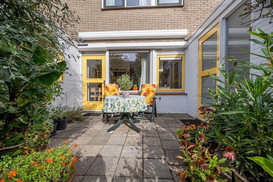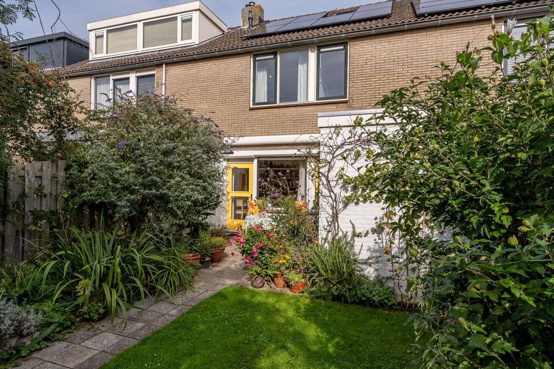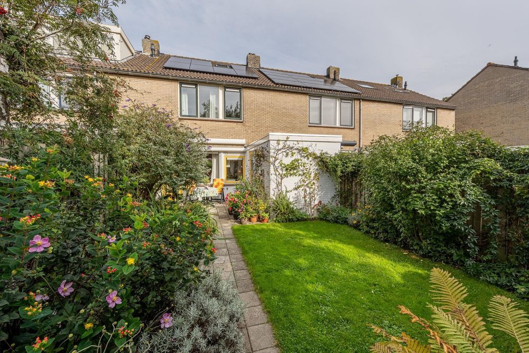 Zowel vanuit de woning als de berging is er toegang naar de zonnige achtertuin. De tuin is gelegen op het zuiden en uitstekend onderhouden. Zo zijn er diverse borders, Zweedse kraan, zonnescherm, gazon en een terras. Via de handige achterom is er toegang naar de achtertuin.