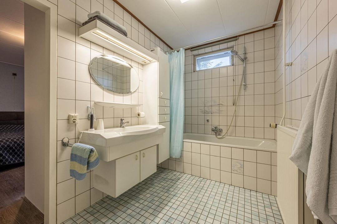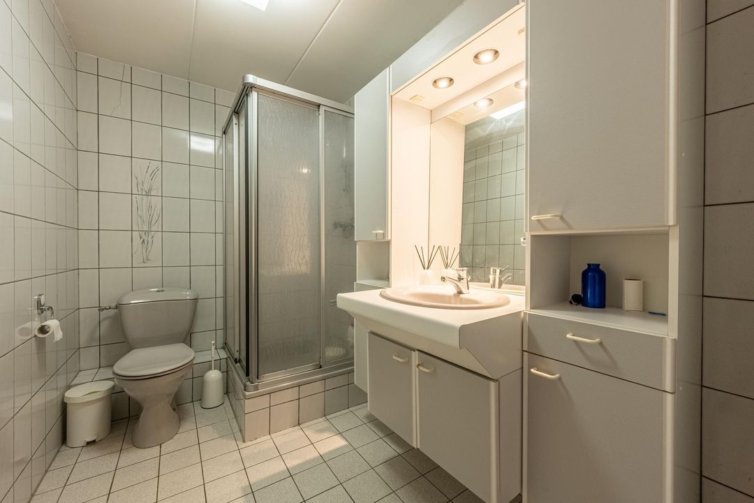 Daarnaast is op deze verdieping een tweede badkamer aanwezig. Via de overloop is met een vlizotrap de praktische vliering bereikbaar, ideaal als extra bergruimte.