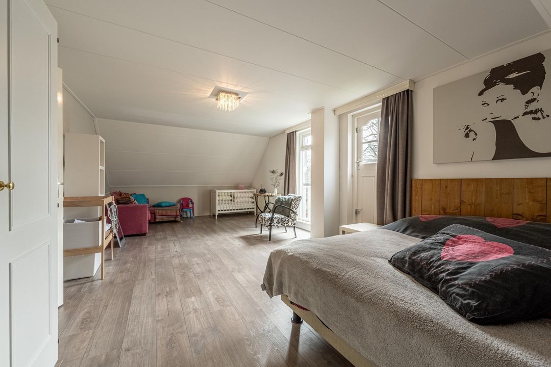 De kamers zijn bijzonder ruim van formaat. Voor wie behoefte heeft aan meer slaapkamers, is het goed mogelijk om hier een andere indeling te realiseren. Met relatief eenvoudige aanpassingen kunnen op deze verdieping meerdere slaapkamers worden gecreëerd, waardoor de woning zich ook uitstekend leent voor grotere gezinnen.