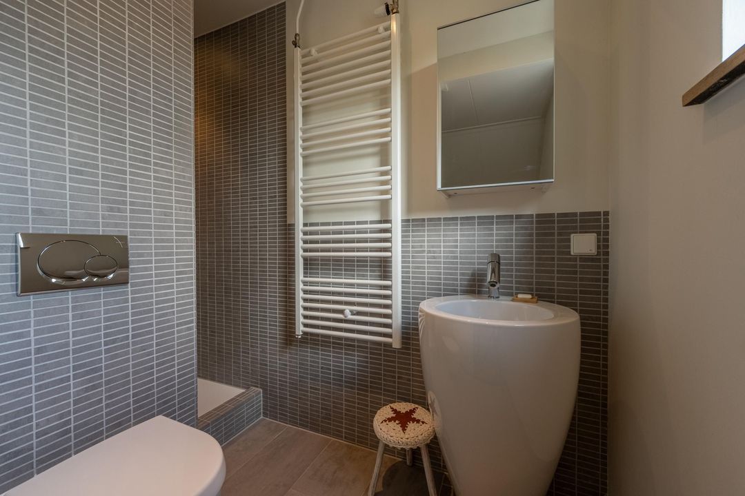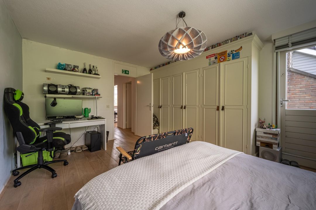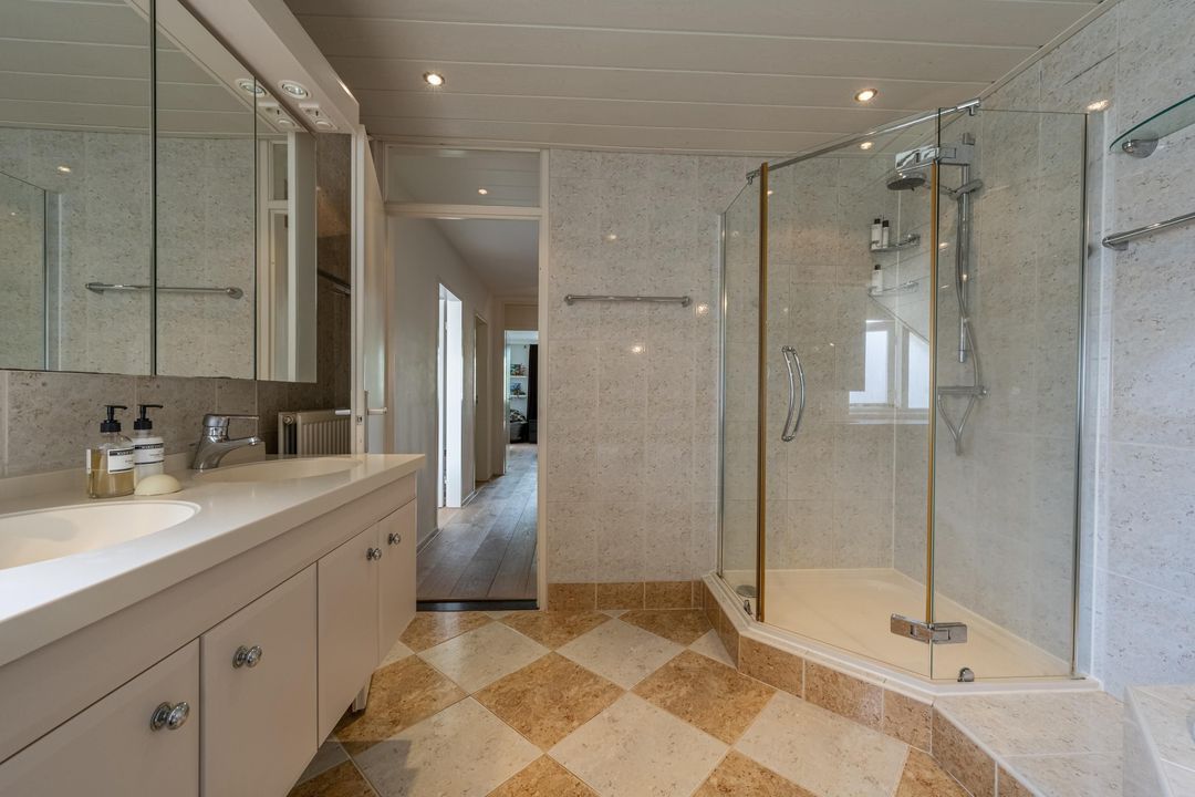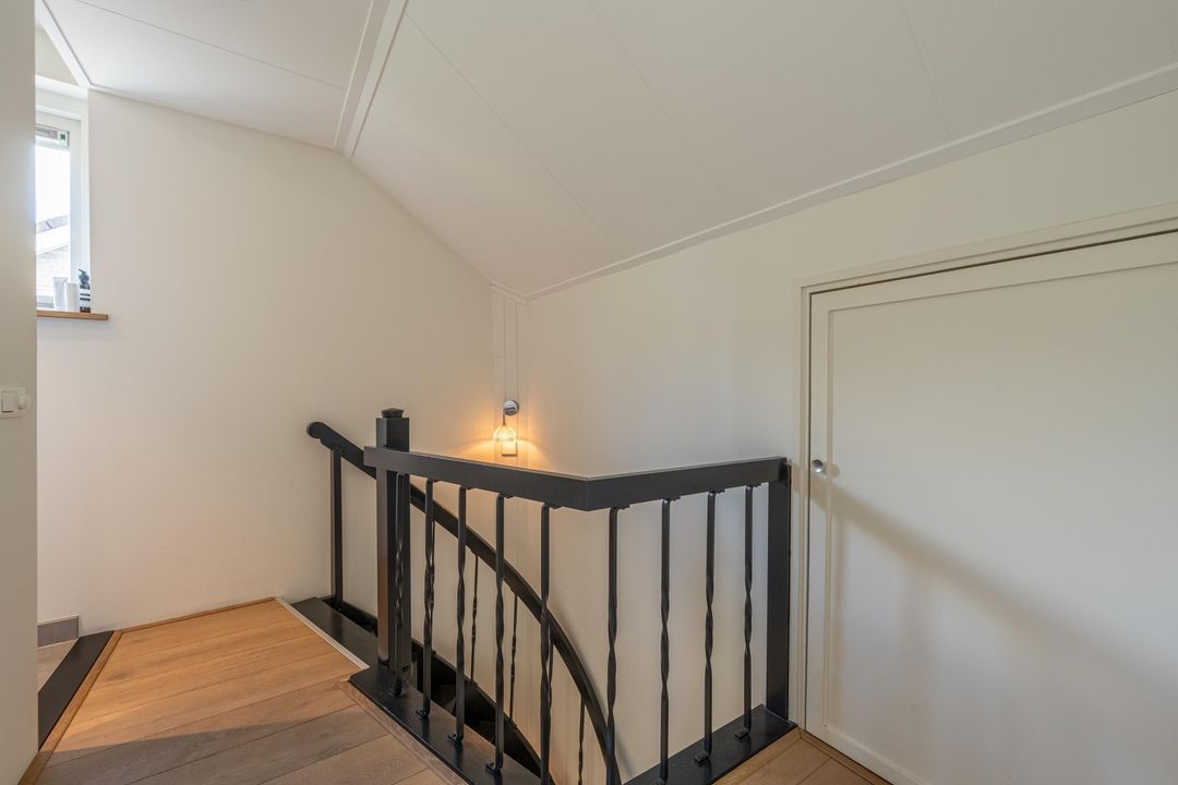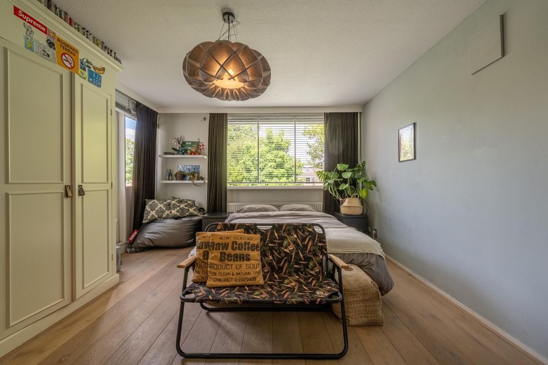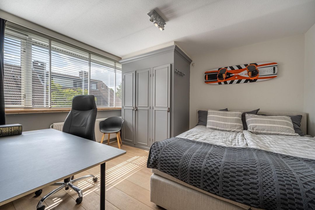 Op de eerste verdieping is een zeer riante overloop met toegang tot drie grote slaapkamers en een ruime badkamer. De slaapkamers en overloop zijn voorzien van eiken lamelparket. Eén van de slaapkamers beschikt over een balkon. De badkamer is compleet uitgevoerd met ligbad, douche en dubbele wastafel. Daarnaast is er op deze verdieping een separaat toilet. De tweede verdieping is ingericht als royale oudersuite. Hier bevindt zich een grote L-vormige slaapkamer met twee dakkapellen en een prettige nokhoogte. De korte zijde van de L-vorm biedt uitzonderlijk veel kastruimte. Aangrenzend is een recent gerealiseerde tweede badkamer in open verbinding met de overloop, voorzien van inloopdouche, toilet en design wastafel, uitgevoerd in een lichte grijstint. Via de overloop is tevens een grote berging bereikbaar met de nieuwe Remeha cv-ketel (2026) en de mechanische ventilatie.