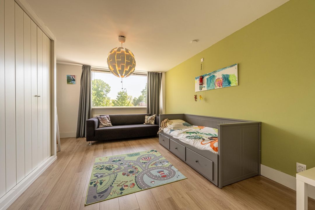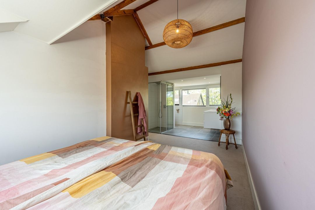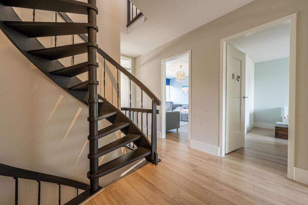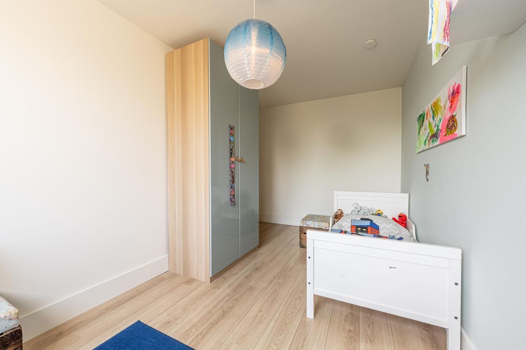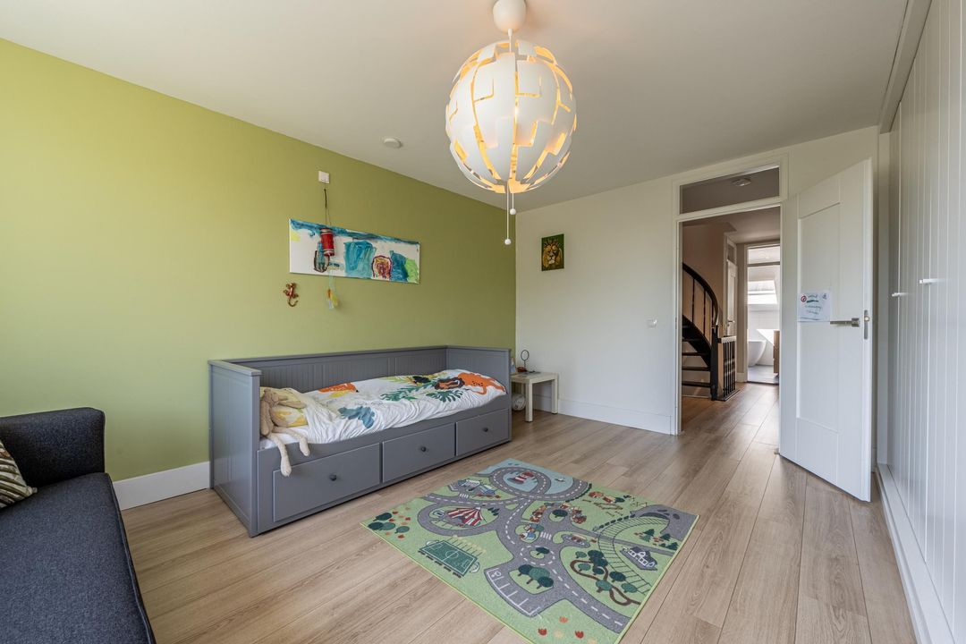 Op de eerste verdieping bevinden zich drie ruime slaapkamers, elk met voldoende lichtinval en een praktische indeling. De grootste slaapkamer is aan de voorzijde gelegen en beschikt over een balkon. Twee van de kamers zijn voorzien van een vaste kastenwand. De moderne badkamer is uitgerust met een ligbad, riante douche met regendouchekop, dubbel wastafelmeubel en een handdoekenkast. Daarnaast is er een separate toiletruimte, toegankelijk vanuit de ruime overloop.