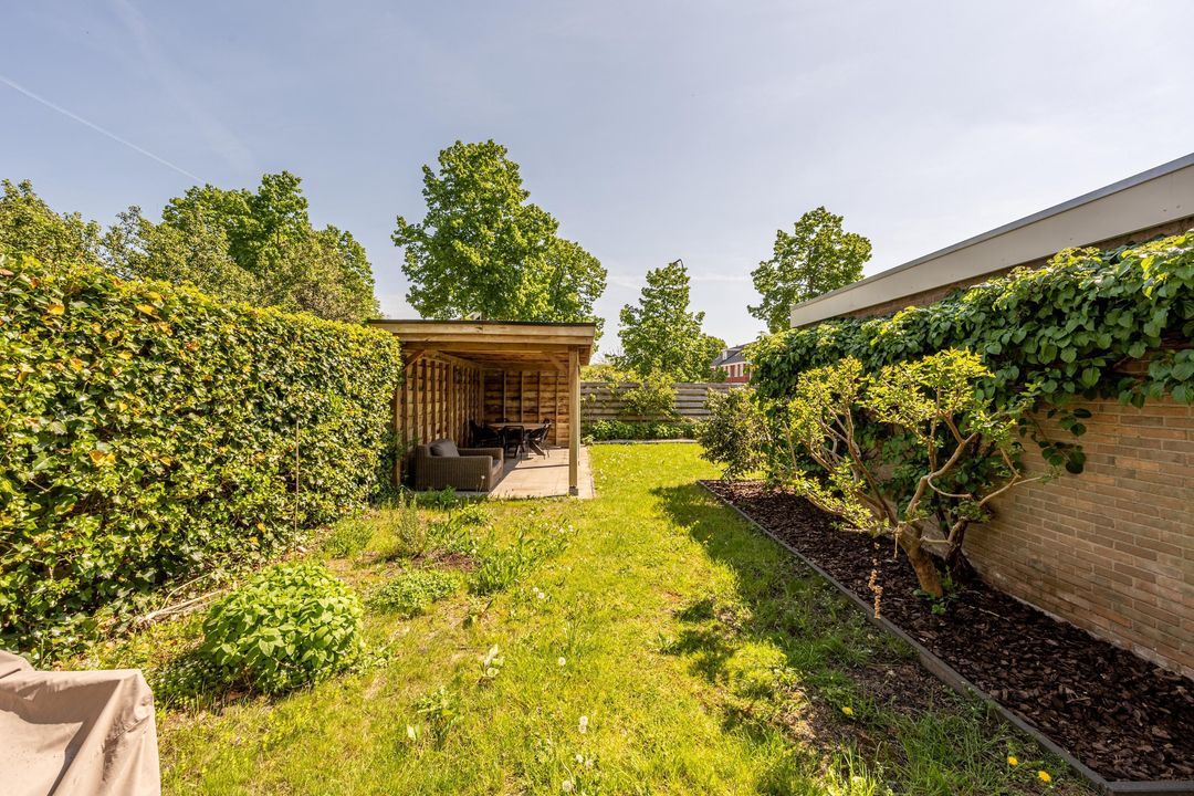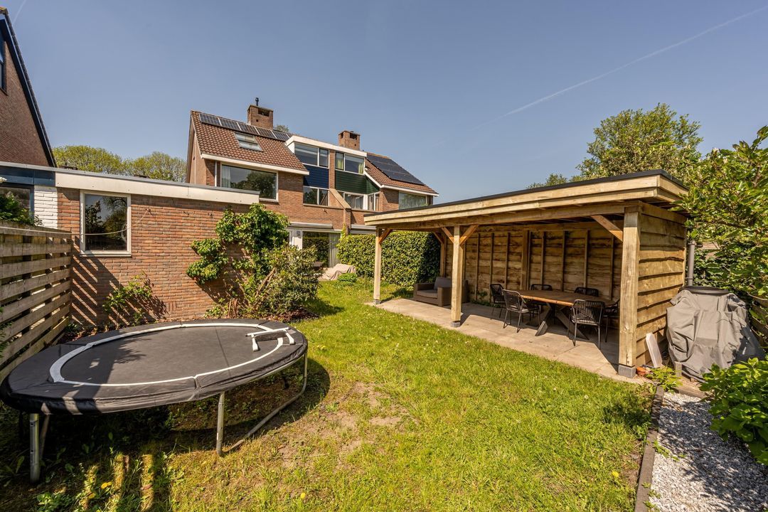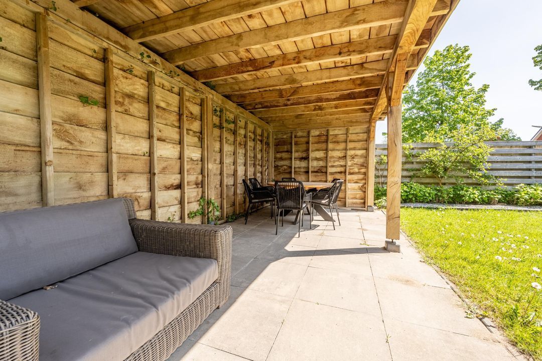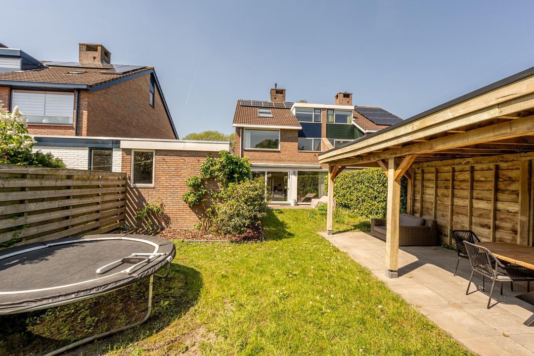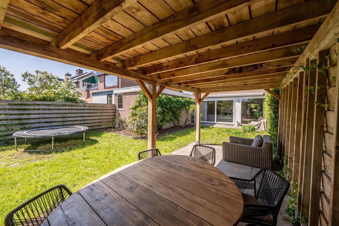 Via de schuifpui is de heerlijke zonnige achtertuin bereikbaar, deze is ingericht met een gezellige overkapping en een gazon. Ideaal voor de kinderen om te spelen en met voldoende ruimte voor een trampoline of schommel. Door de diepte van de tuin (ca. 11 meter) is er de gehele dag een plekje in de zon en in de schaduw te vinden.