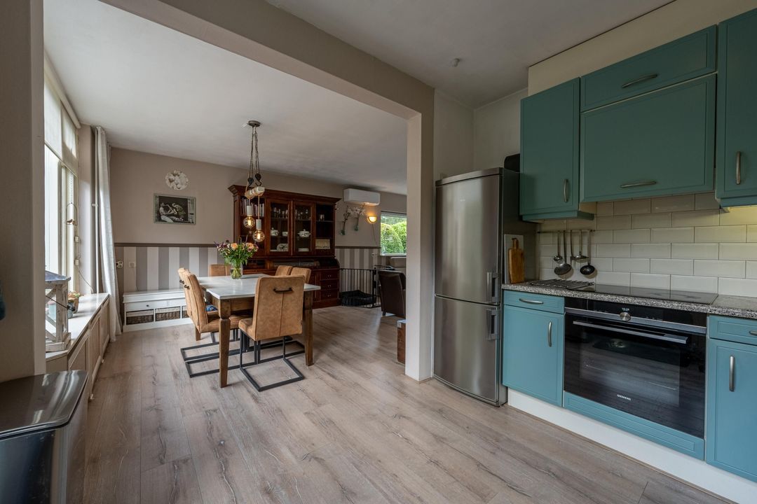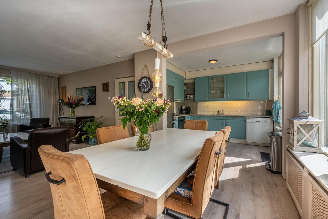 De woonkamer is een lichte doorzonruimte met grote raampartijen aan de voor- en achterzijde. Door de hoekligging is er bovendien een extra raam aan de zijkant aanwezig, waardoor de ruimte veel daglicht ontvangt. Hier is volop plek voor een royale zithoek en een eettafel. Een airco-unit zorgt voor extra comfort in zowel de zomer als de winter.