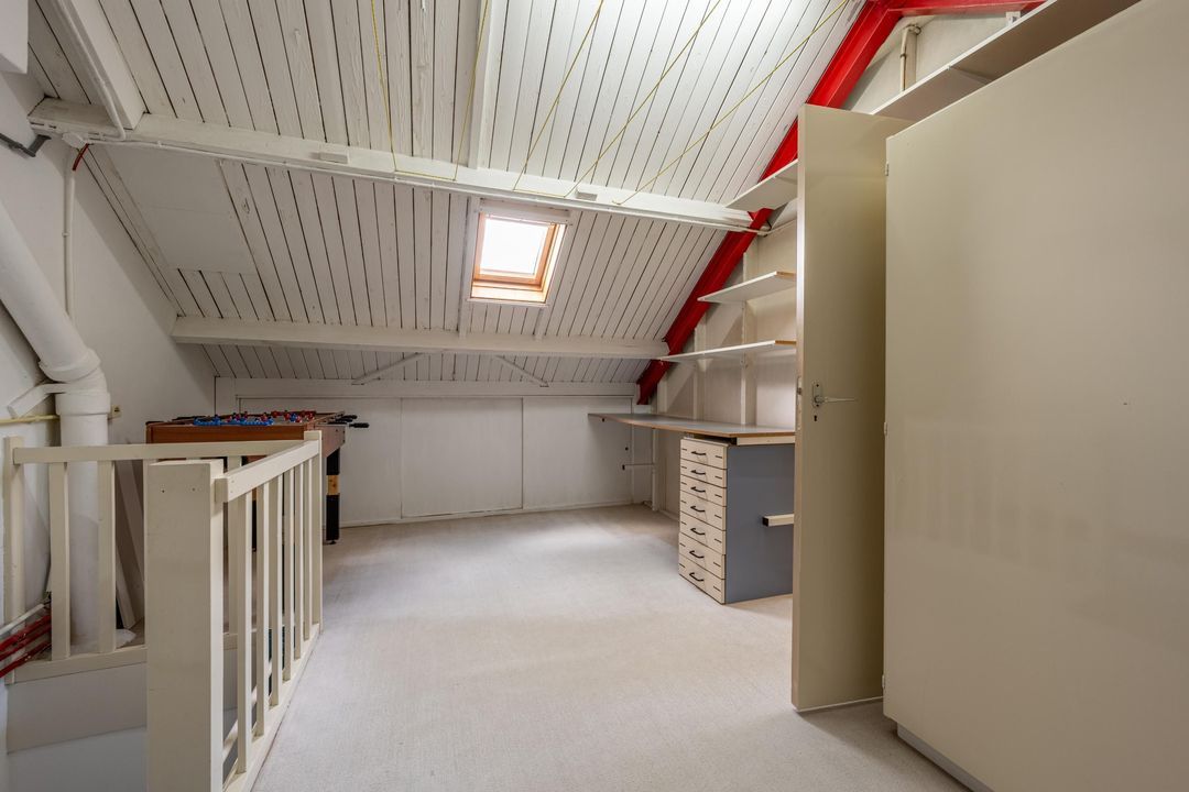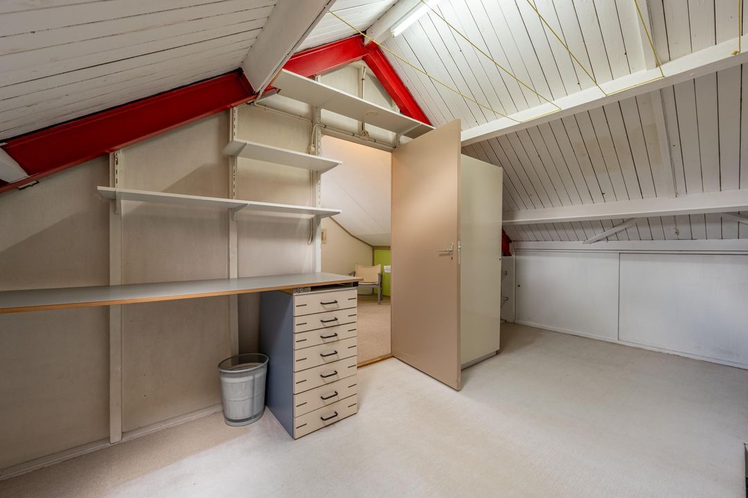 Via de trap bereik je de zolderverdieping. Op de voorzolder is bergruimte aanwezig achter de beschotting. Hier bevinden zich tevens de verdeler van de zonnepanelen en de Intergas cv-installatie uit 2013. Een dakraam zorgt voor natuurlijke lichtinval.