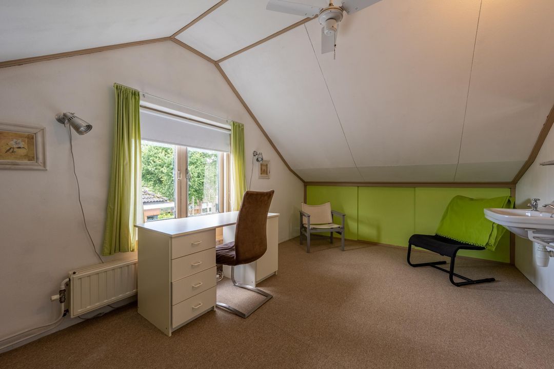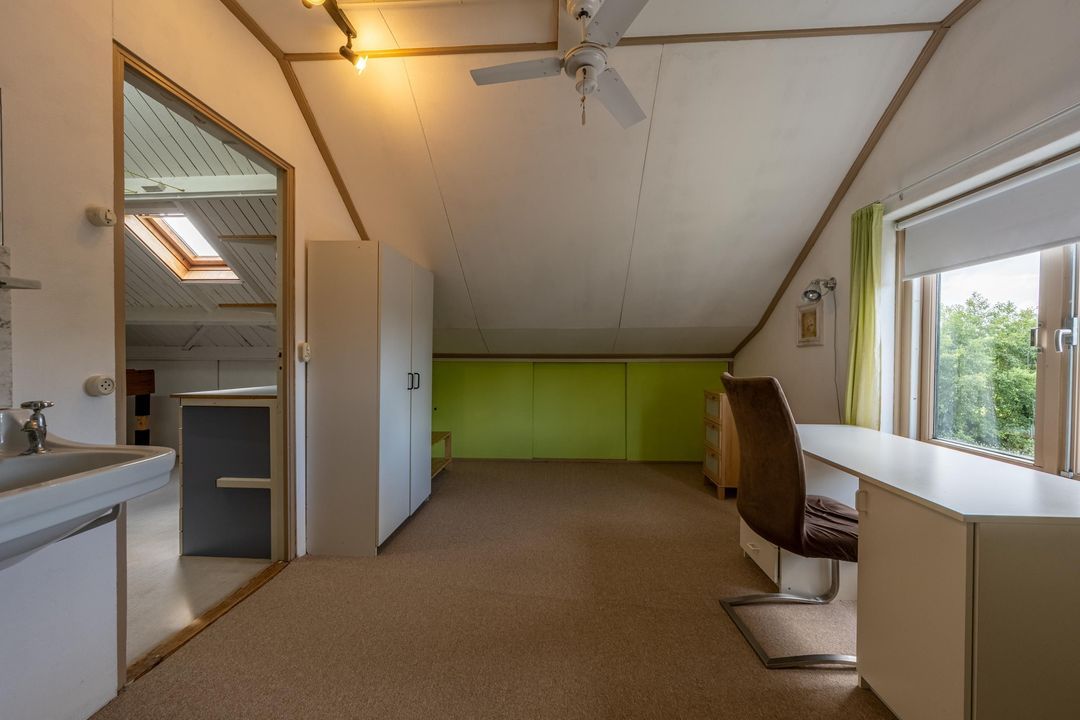 Op deze verdieping bevindt zich de vierde slaapkamer met een wastafel, rolluik en extra bergruimte achter de knieschotten.
