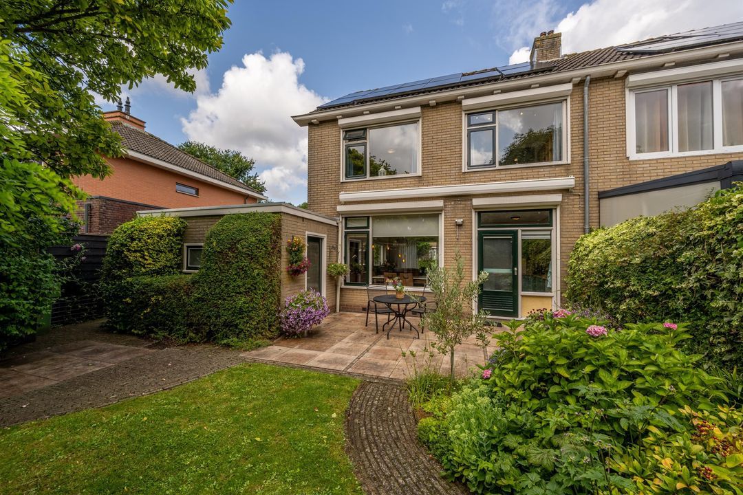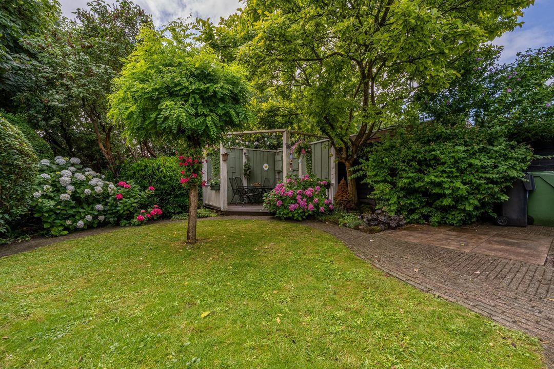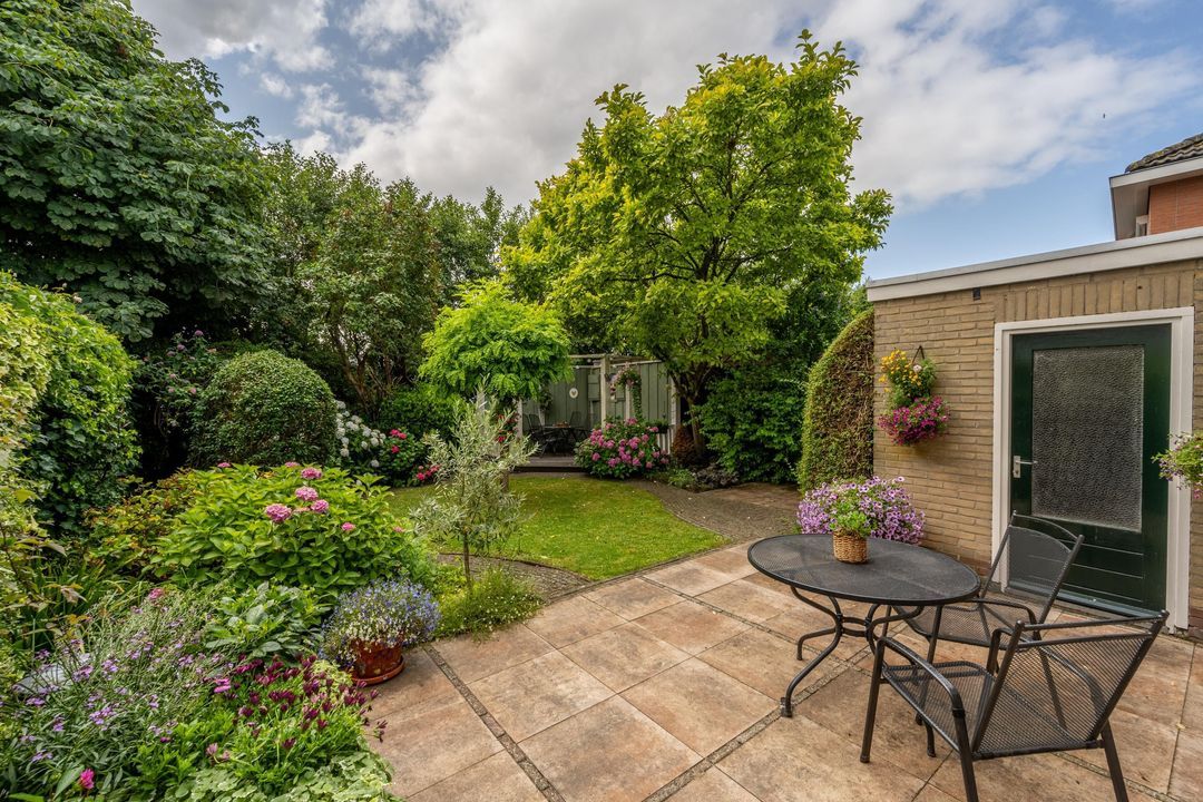 De achtertuin ligt op het zuidoosten en is verzorgd aangelegd met bestrating, borders en volwassen beplanting. De tuin beschikt over twee terrassen en vormt een fijne buitenruimte om te genieten van zon en privacy.